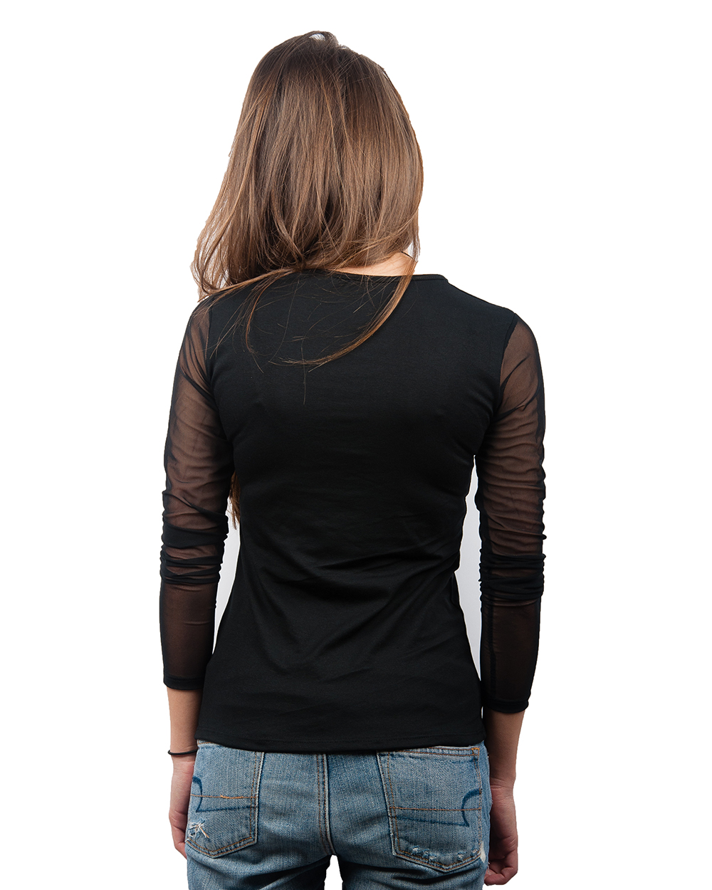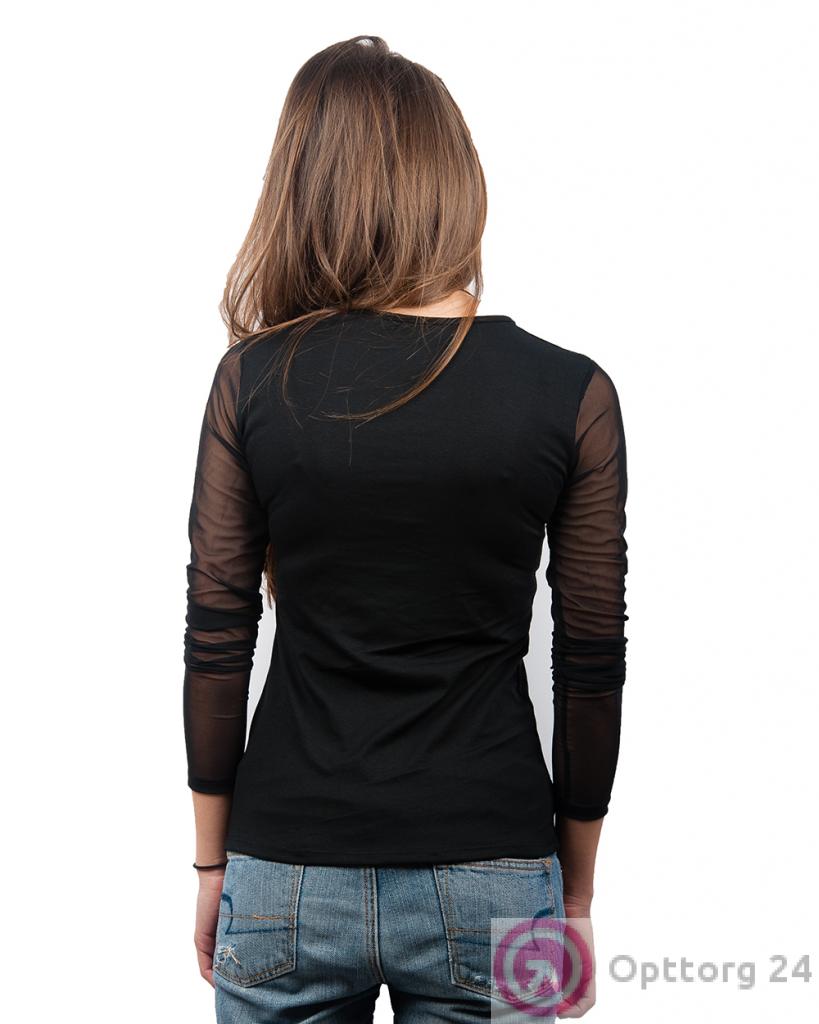 Джемпер женский черный с полупрозрачной вставкой оптом