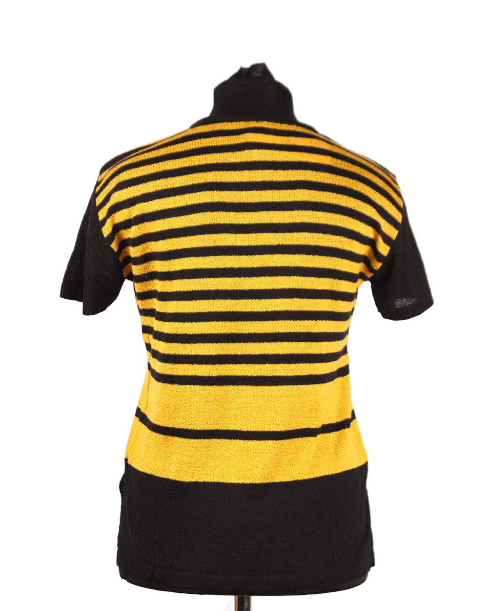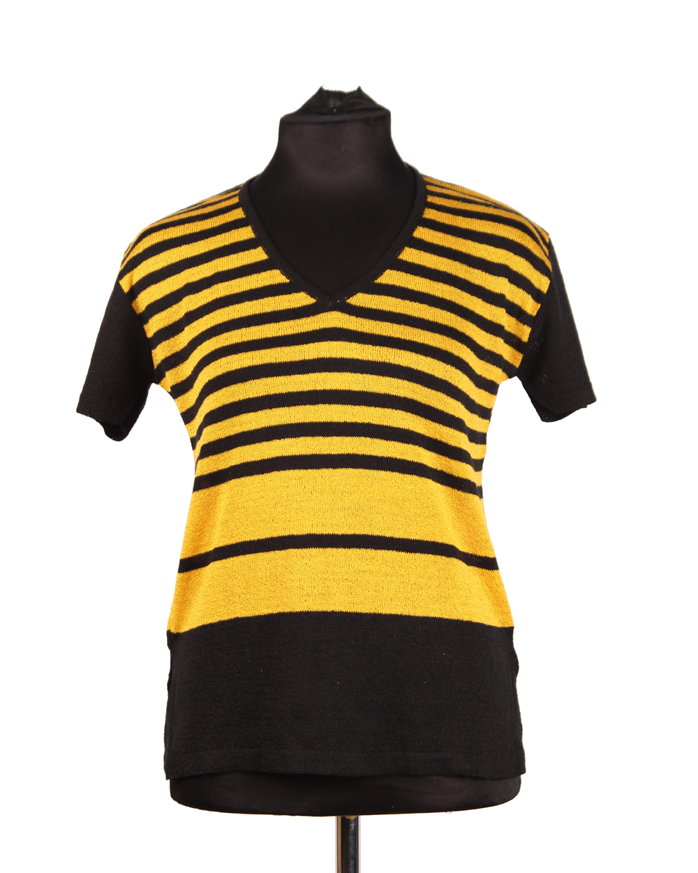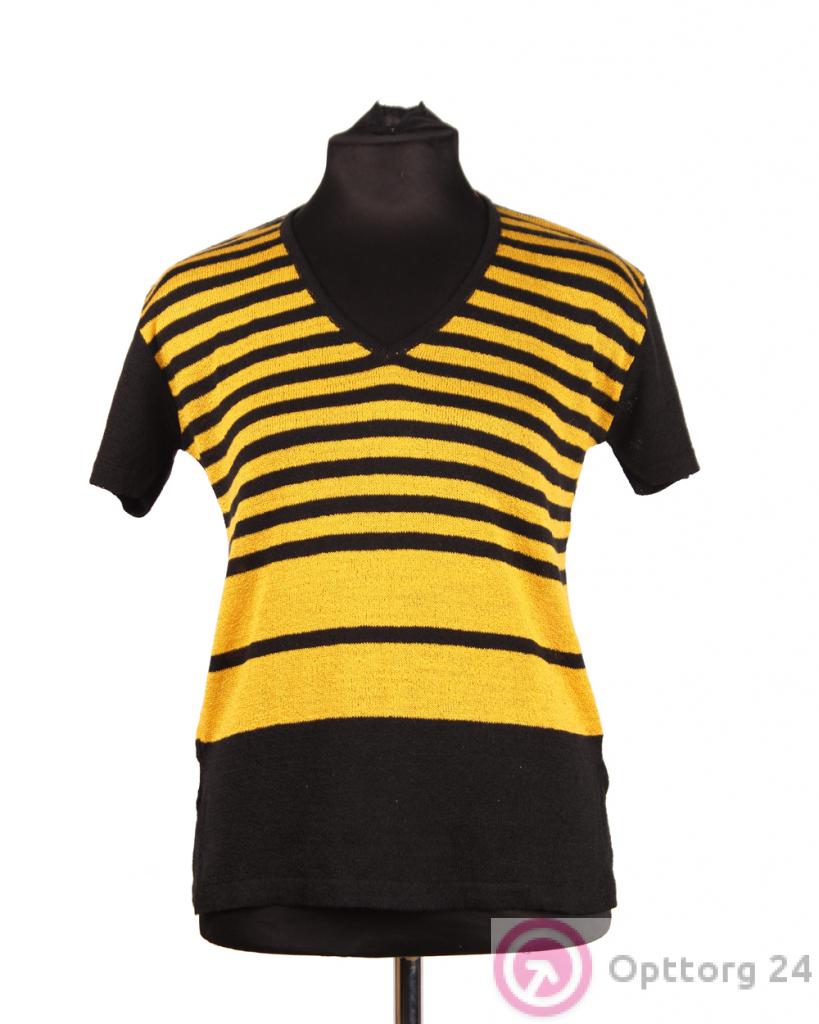 Джемпер женский черный желтыми полосками с короткими рукавами оптом