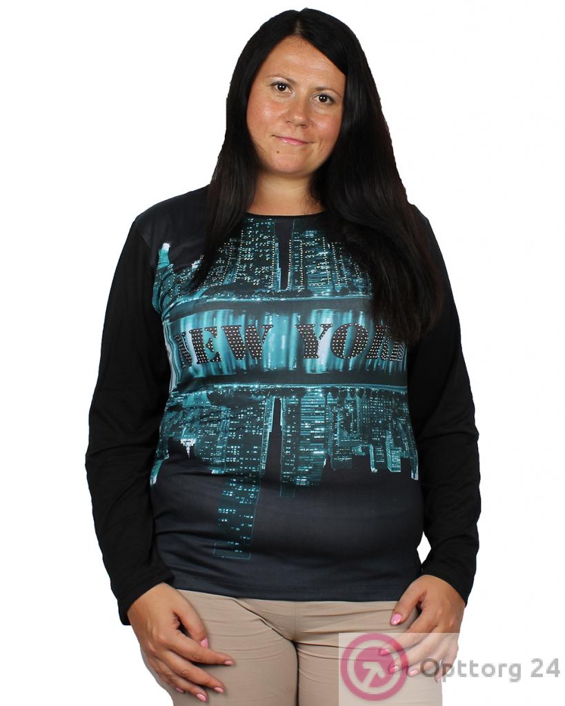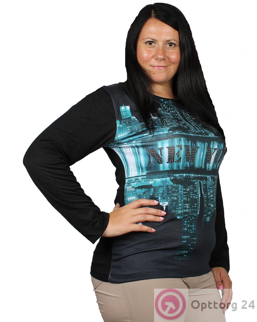 Джемпер женский чёрного цвета с принтом " New York " оптом
