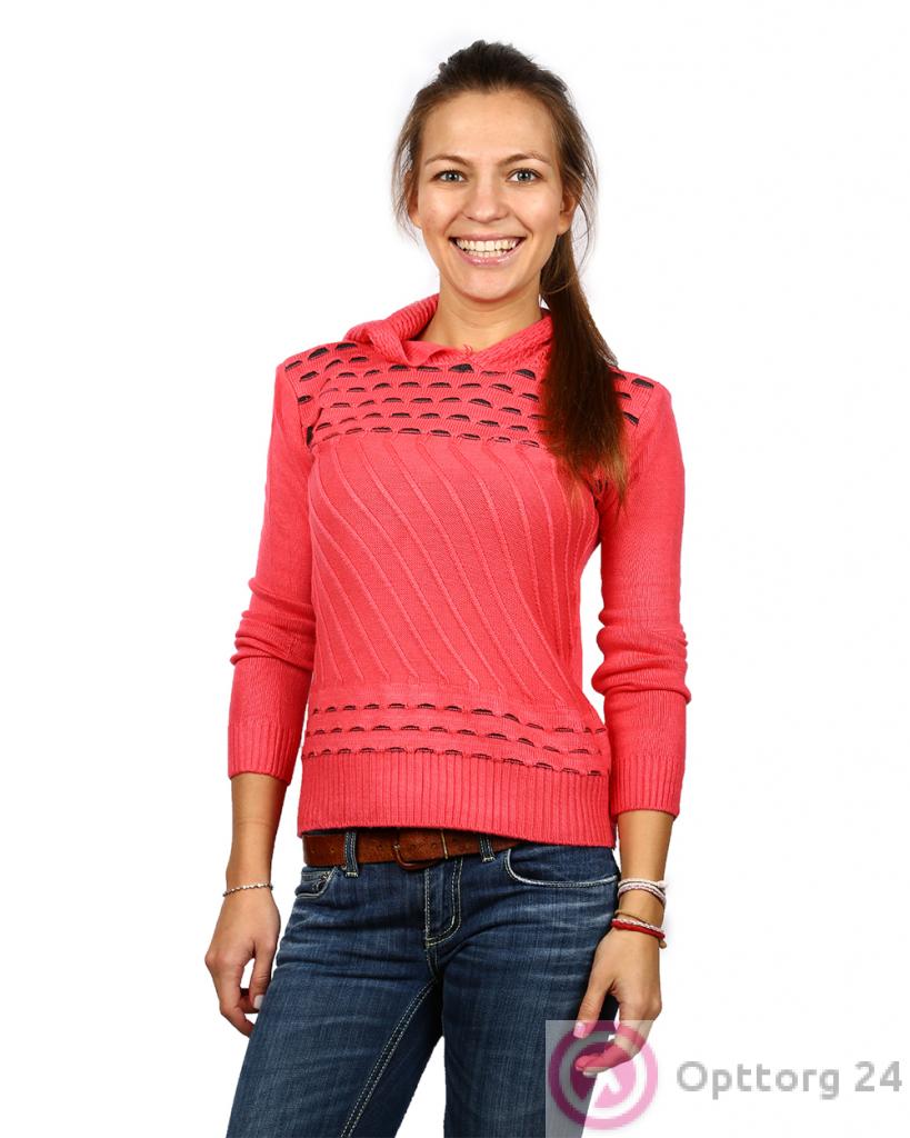 Джемпер женский декорированный перфорацией розовый купить оптом