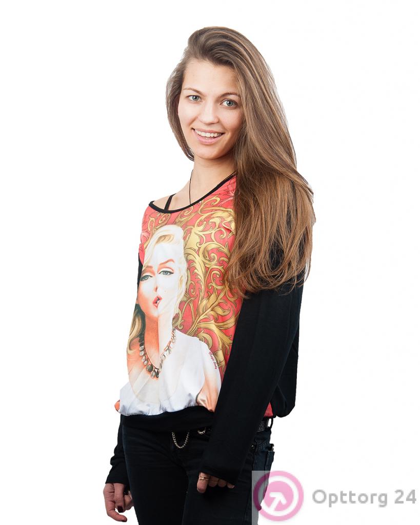 Джемпер женский коричнево цвета с узором принтом "девушка" оптом