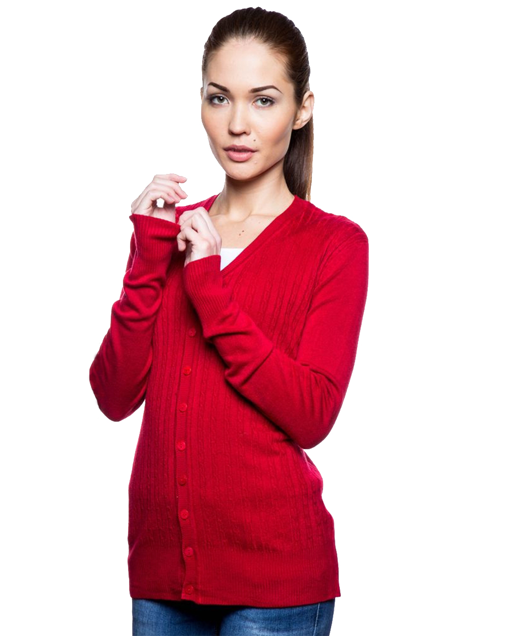 Красный джемпер с V-образным вырезом. Застегивается на пуговицы. В упаковке микс разных цветов