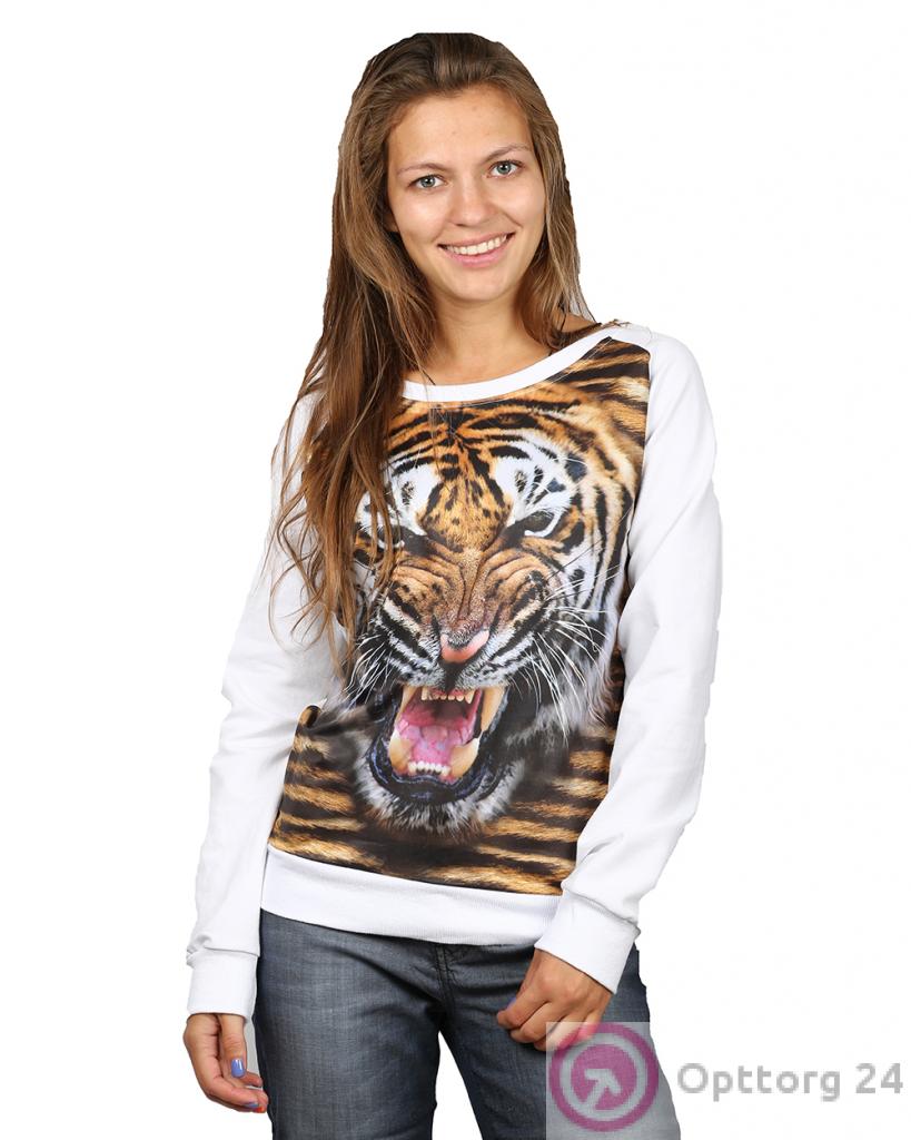 Джемпер женский молодёжный белого цвета с принтом " Тигры " оптом