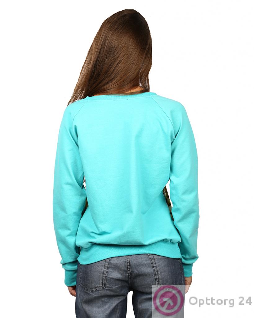 Джемпер женский молодёжный кислотно-голубого цвета с принтом " Леопард " оптом