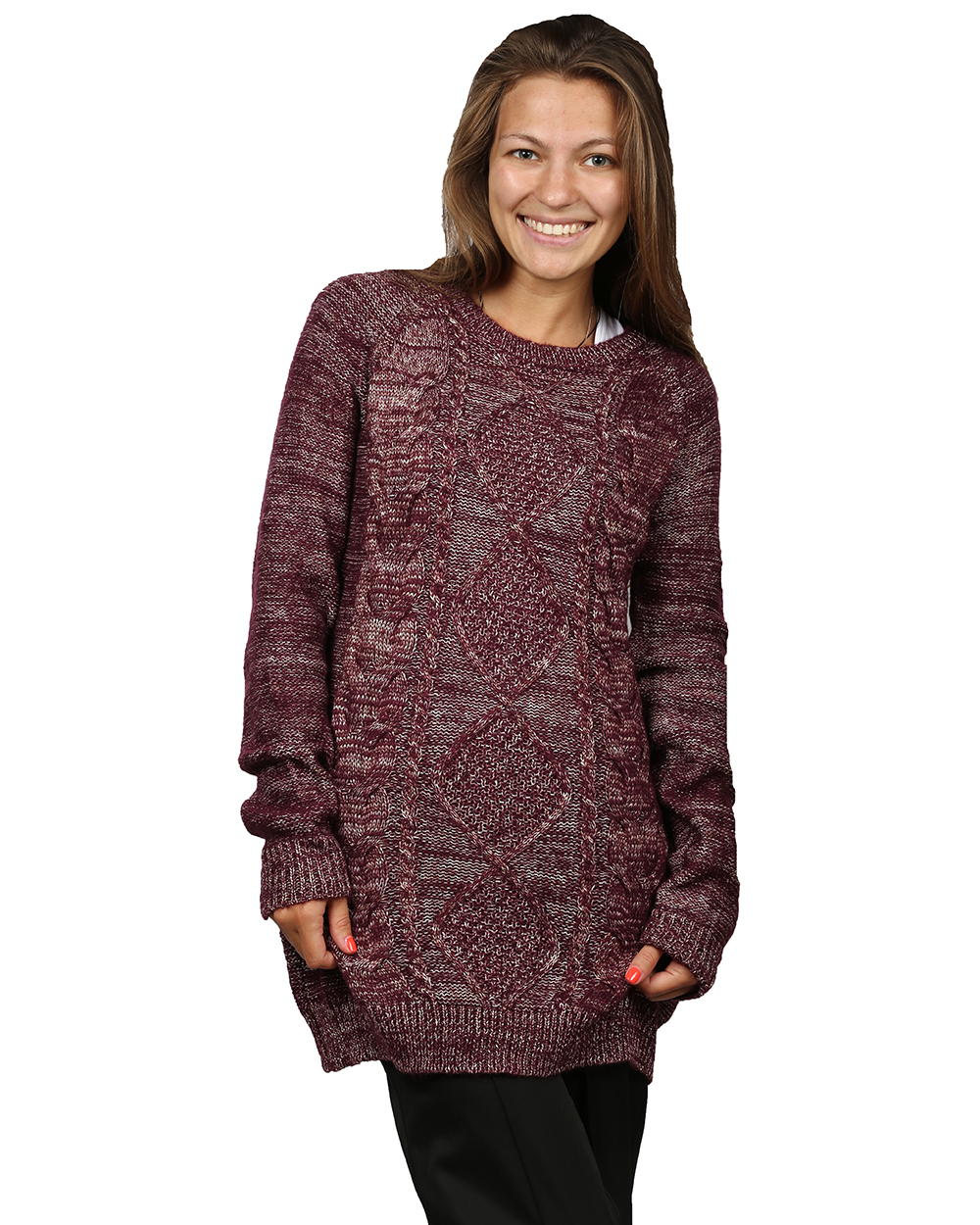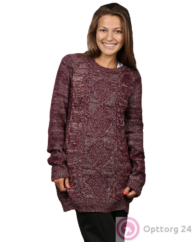 Джемпер женский молодёжный вязанный бордового цвета оптом
