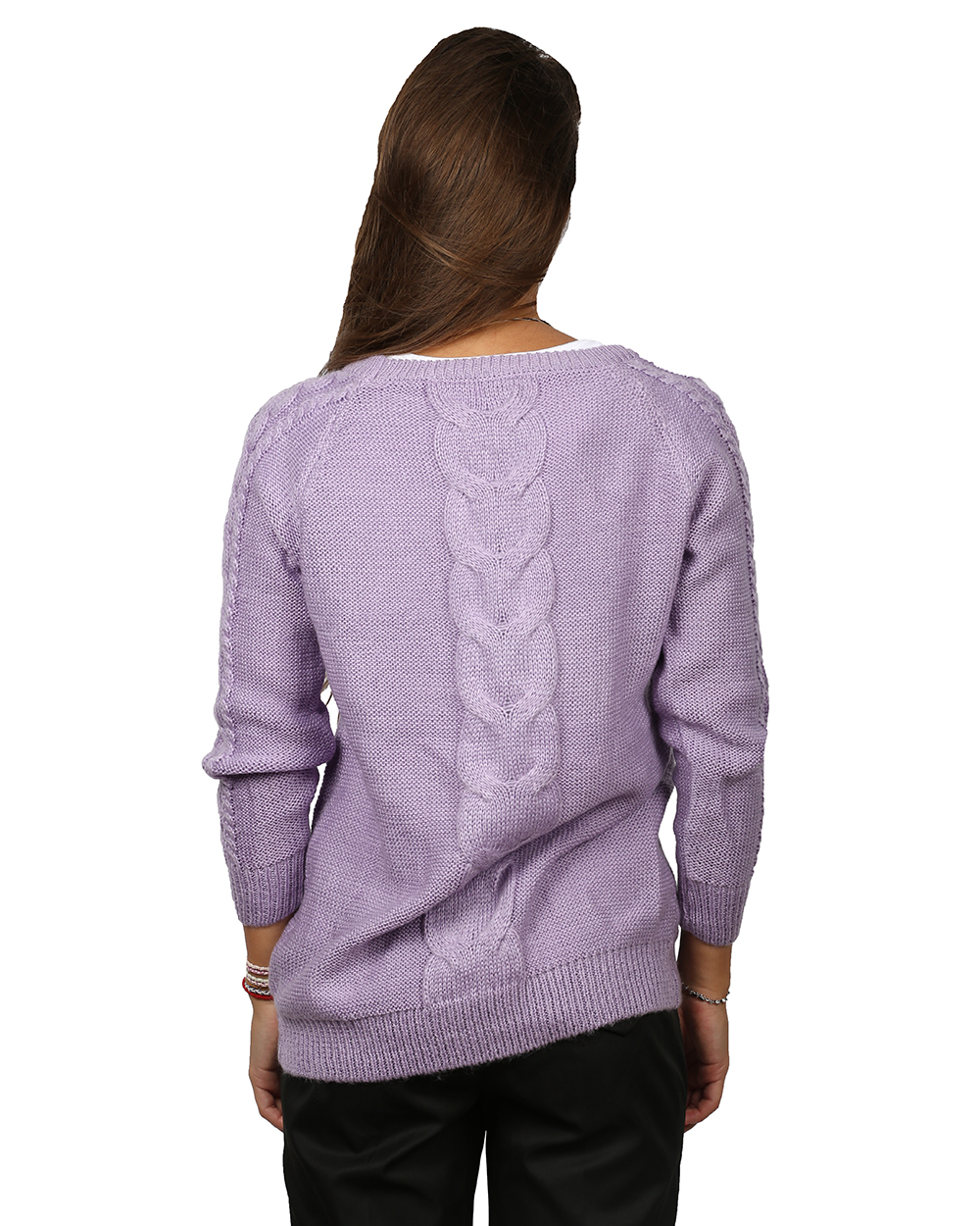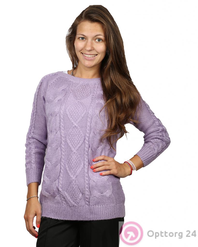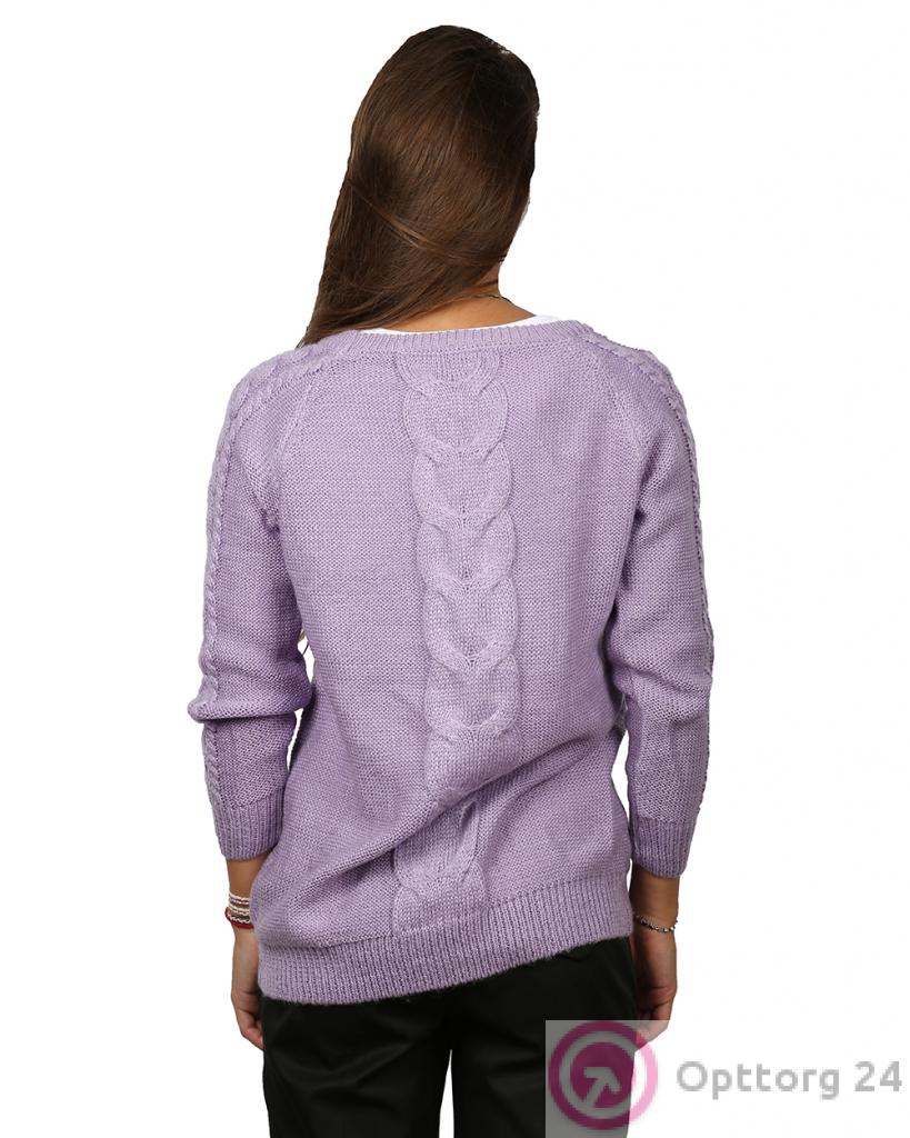 Джемпер женский молодёжный вязанный с принтом "коса" оптом