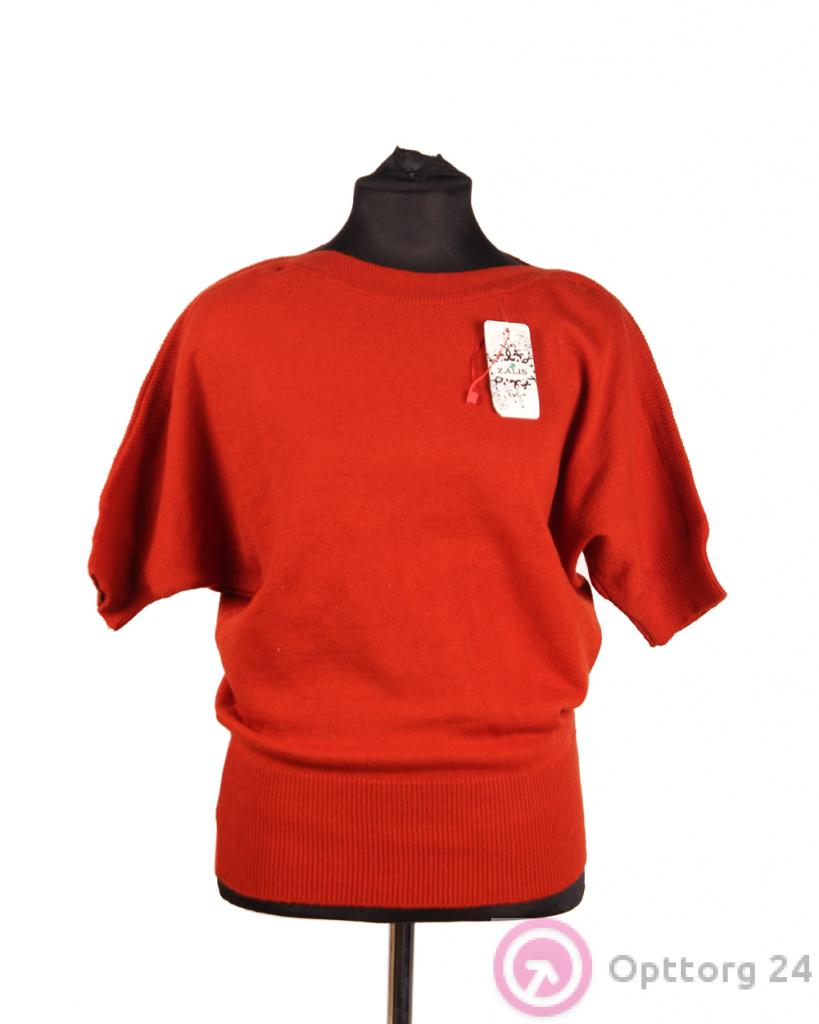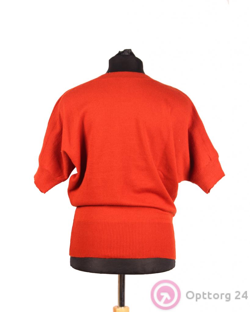 Джемпер женский оранжевый свободный с короткими рукавами оптом