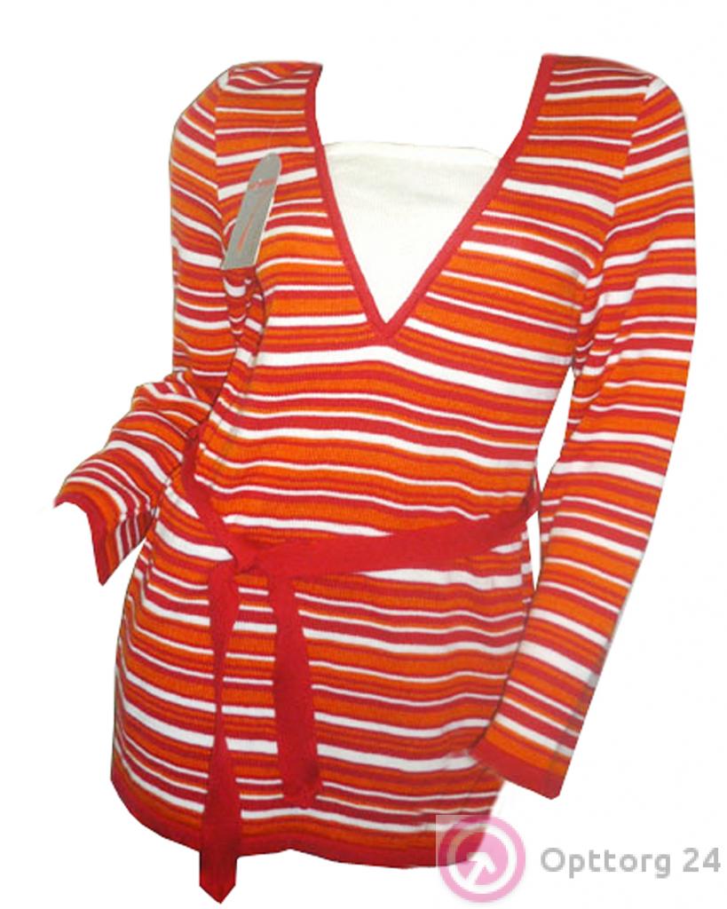 Джемпер женский оранжевый в полоску с поясом оптом