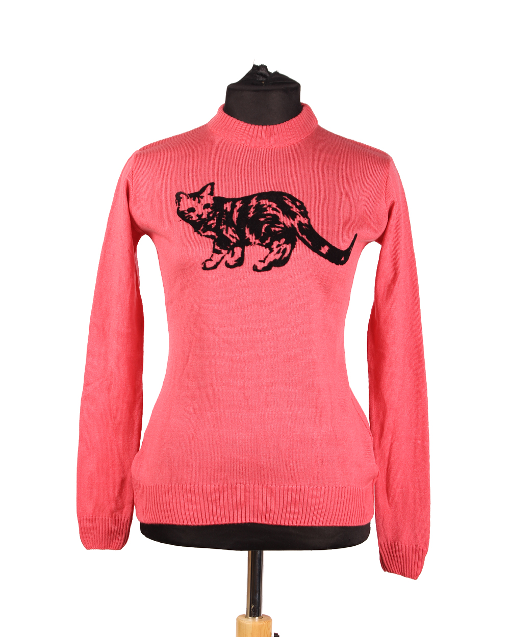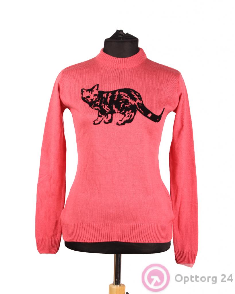 Джемпер женский персикового цвета с принтом "Кот" оптом