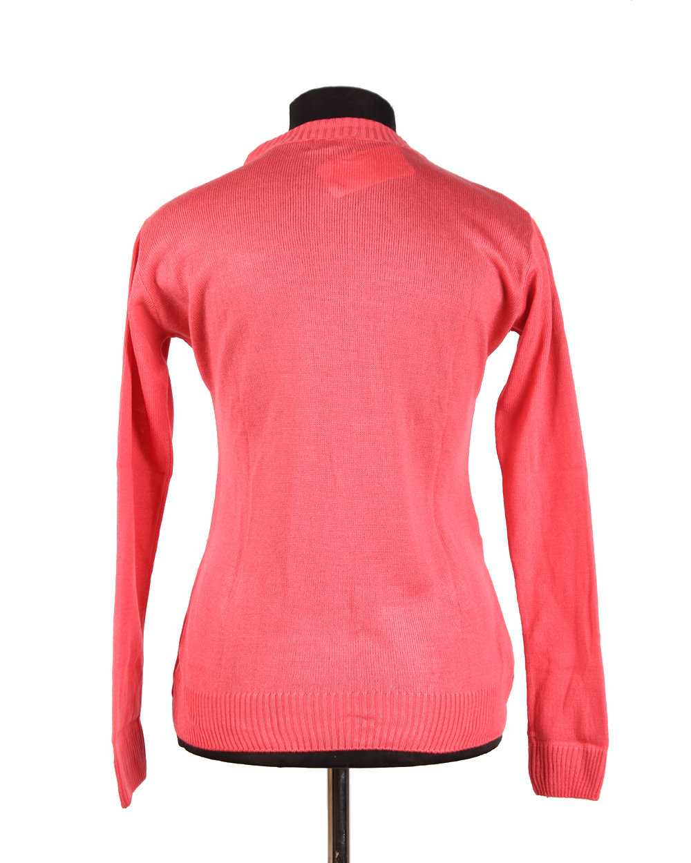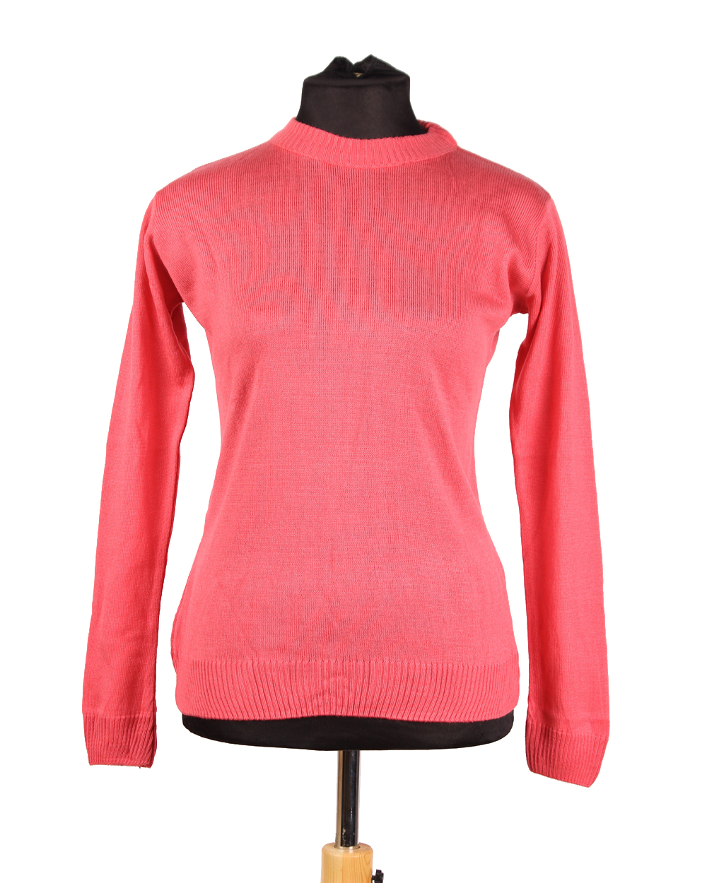 Яркий джемпер розового цвета - прекрасный выбор для прохладной погоды. Модель на длинный рукав, мягкий и теплый. Изделие однотонное с круглой горловинкой. Рукава и низ выполнены узором "резинка".
