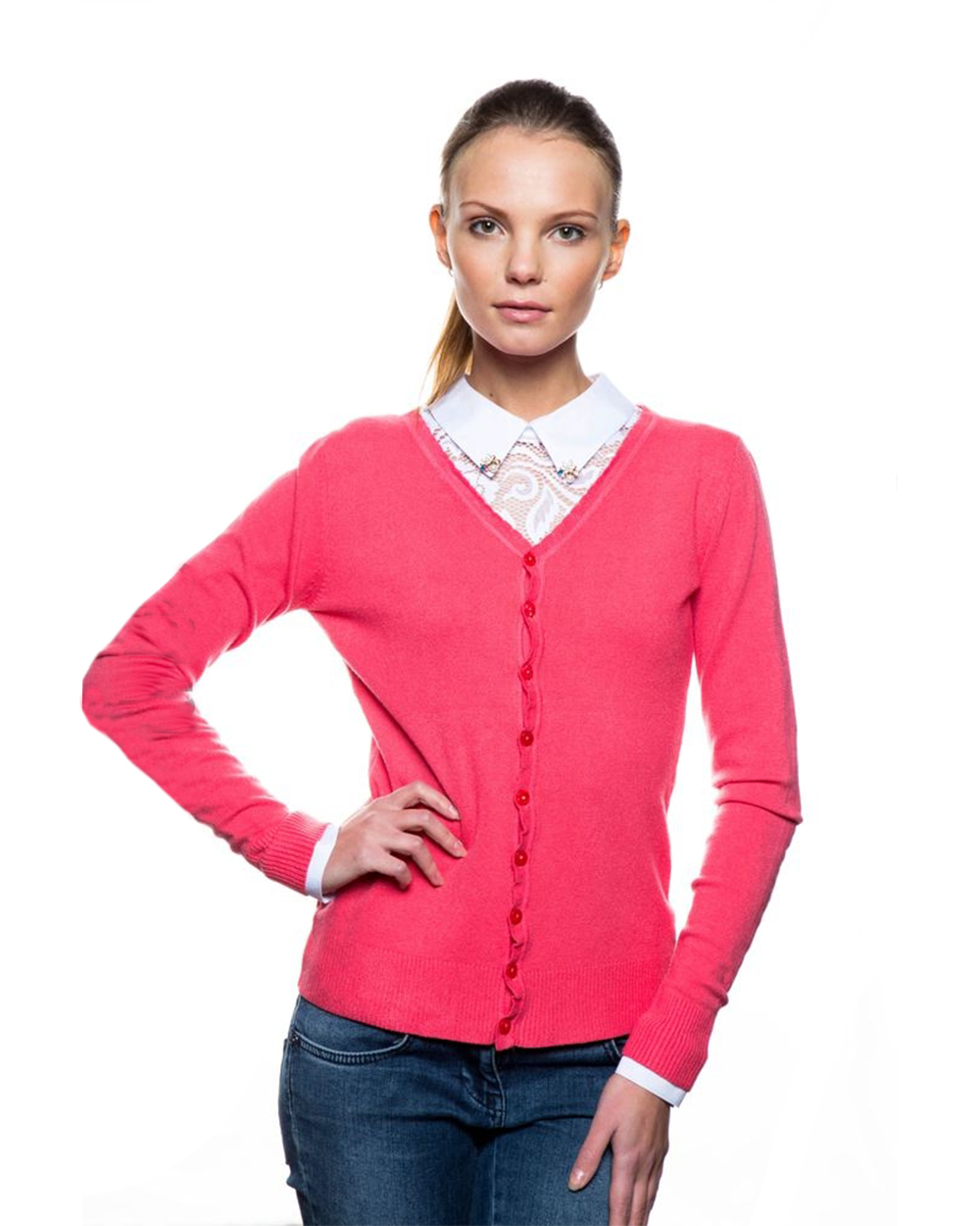 Розовый джемпер с V-образным вырезом. Застегивается на пуговицы. В упаковке микс разных цветов