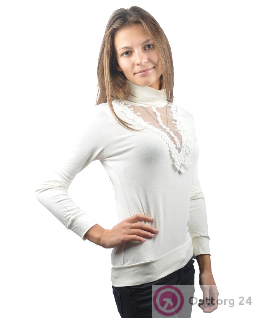 Джемпер женский с кружевом и высоким воротом цвета молока оптом