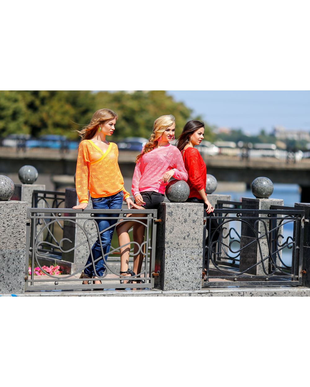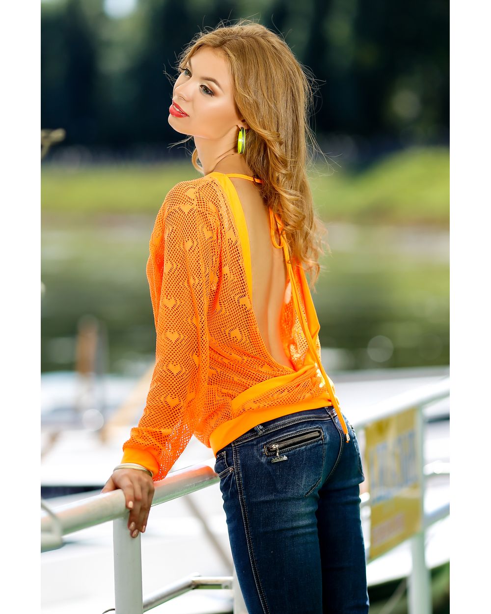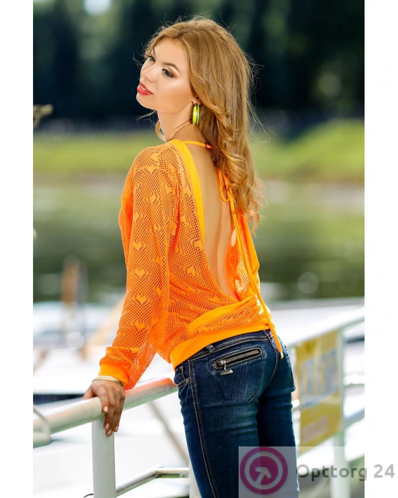 Джемпер женский с перфорацией "огурец" оранжевый оптом