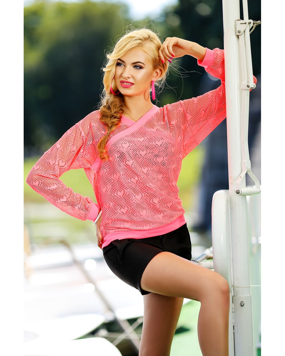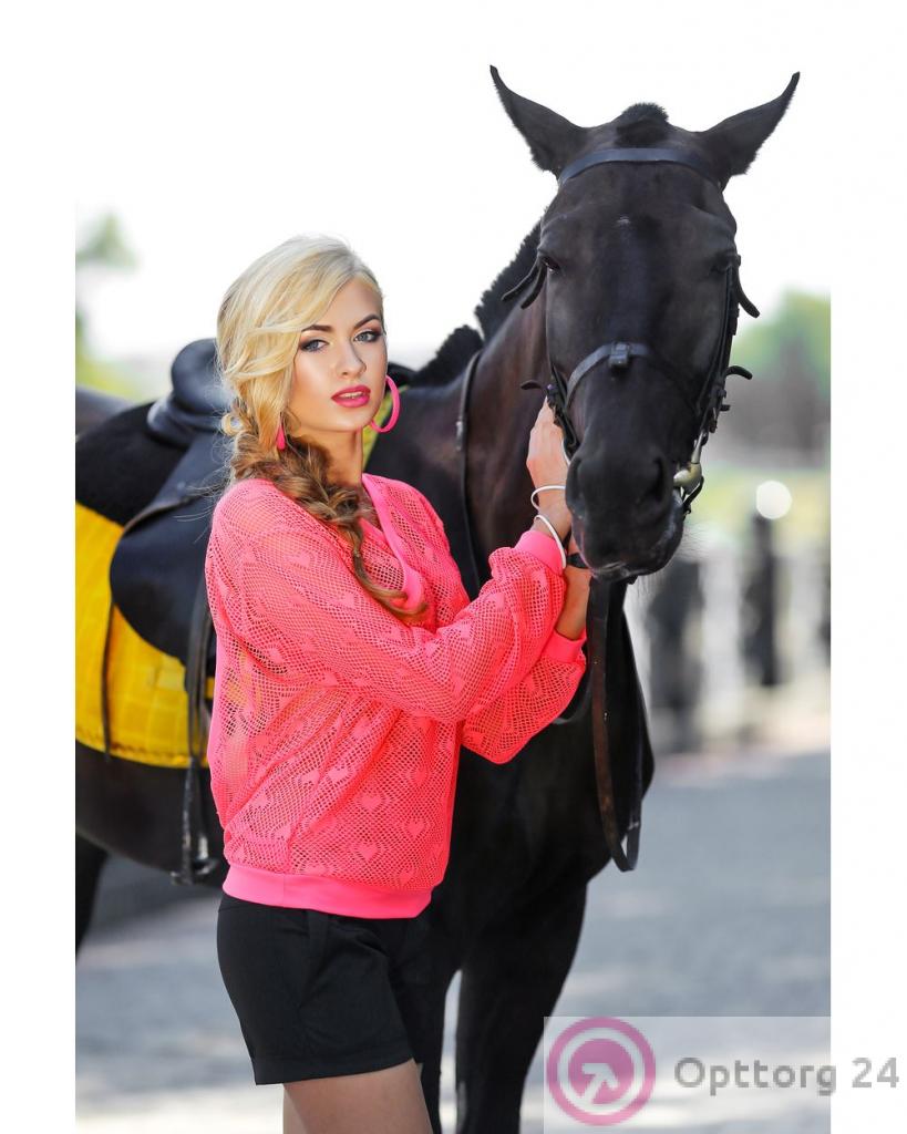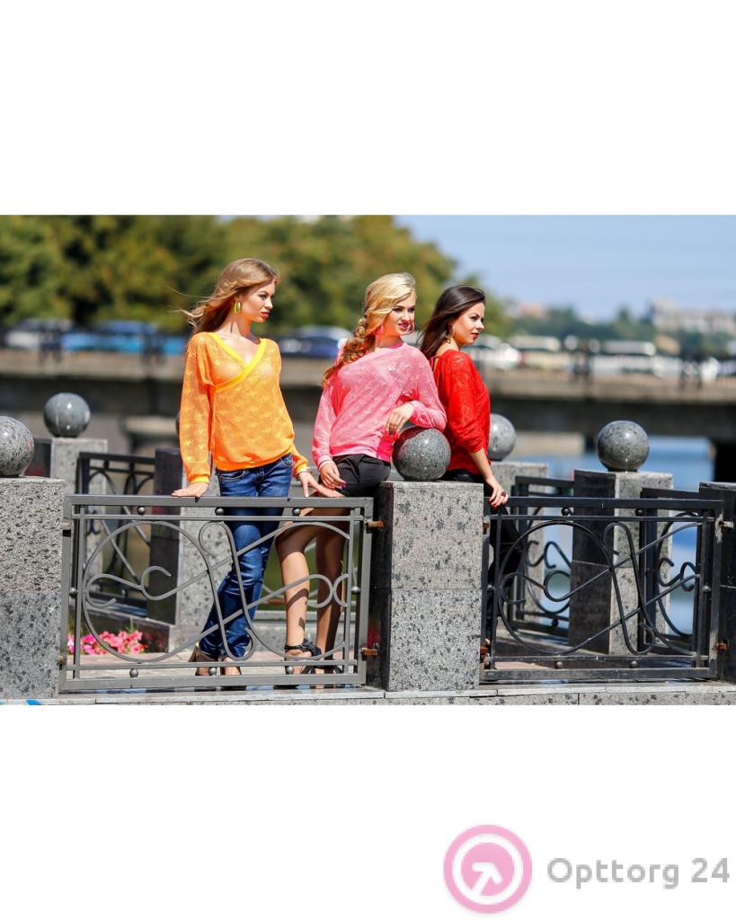 Джемпер женский с перфорацией "огурец"розовый оптом
