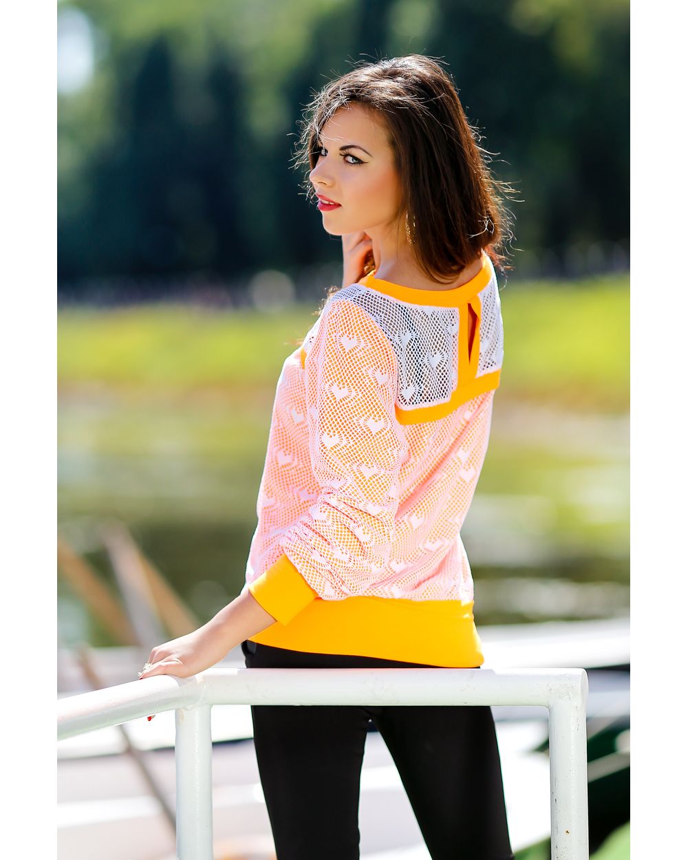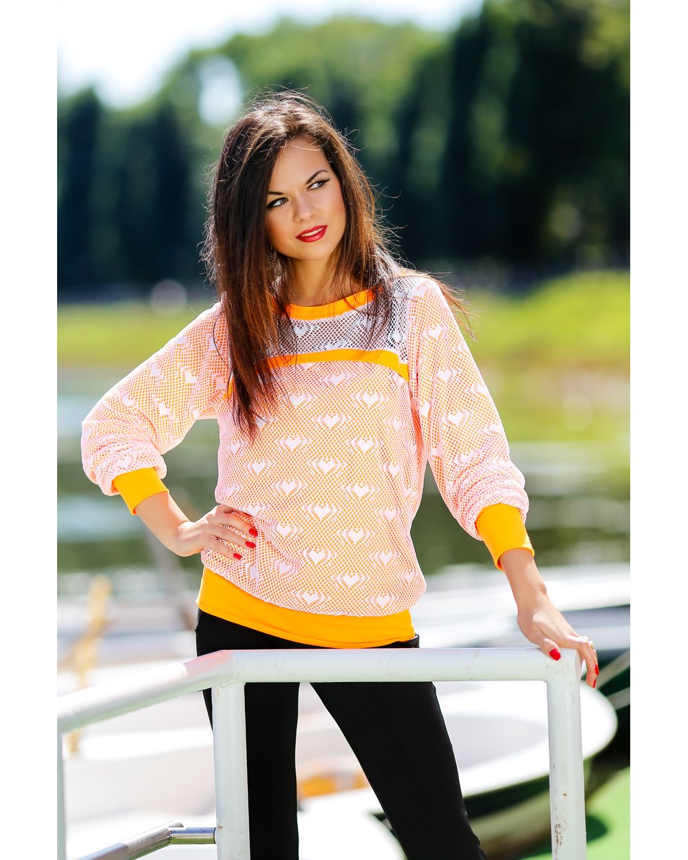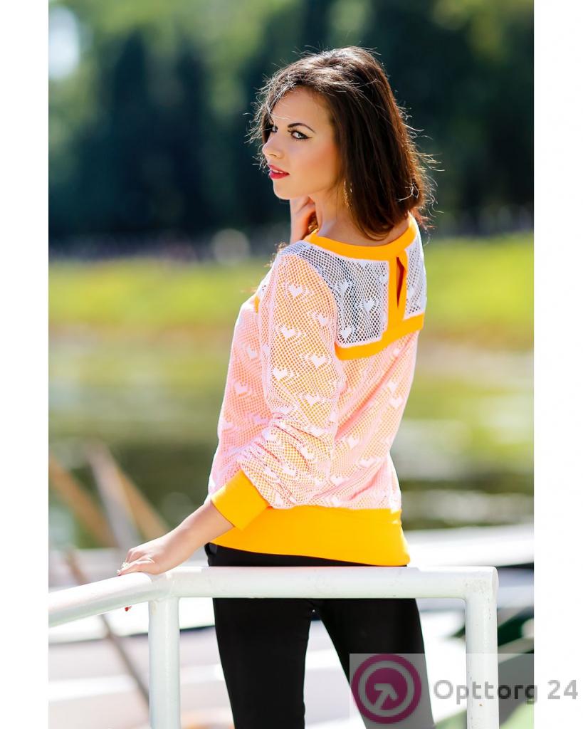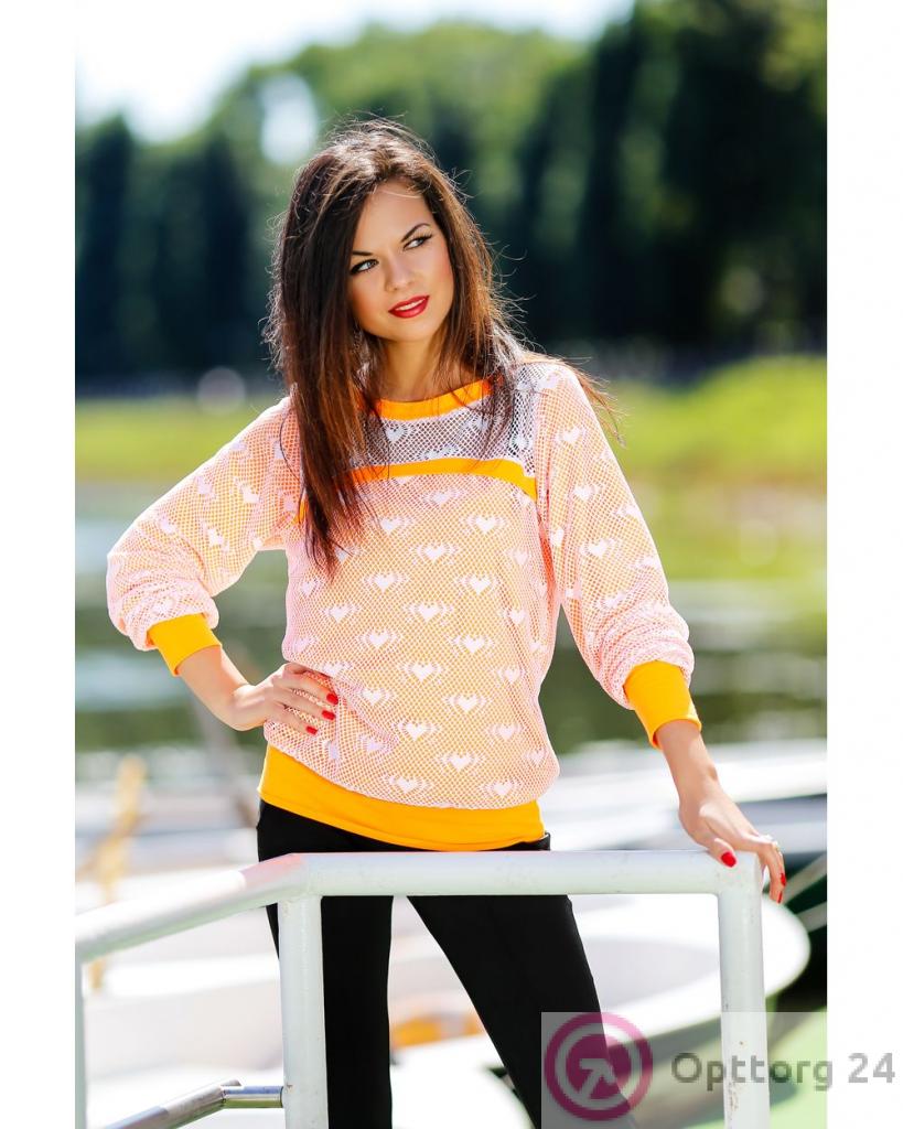 Джемпер женский с сетчатым узомом оранжевый оптом