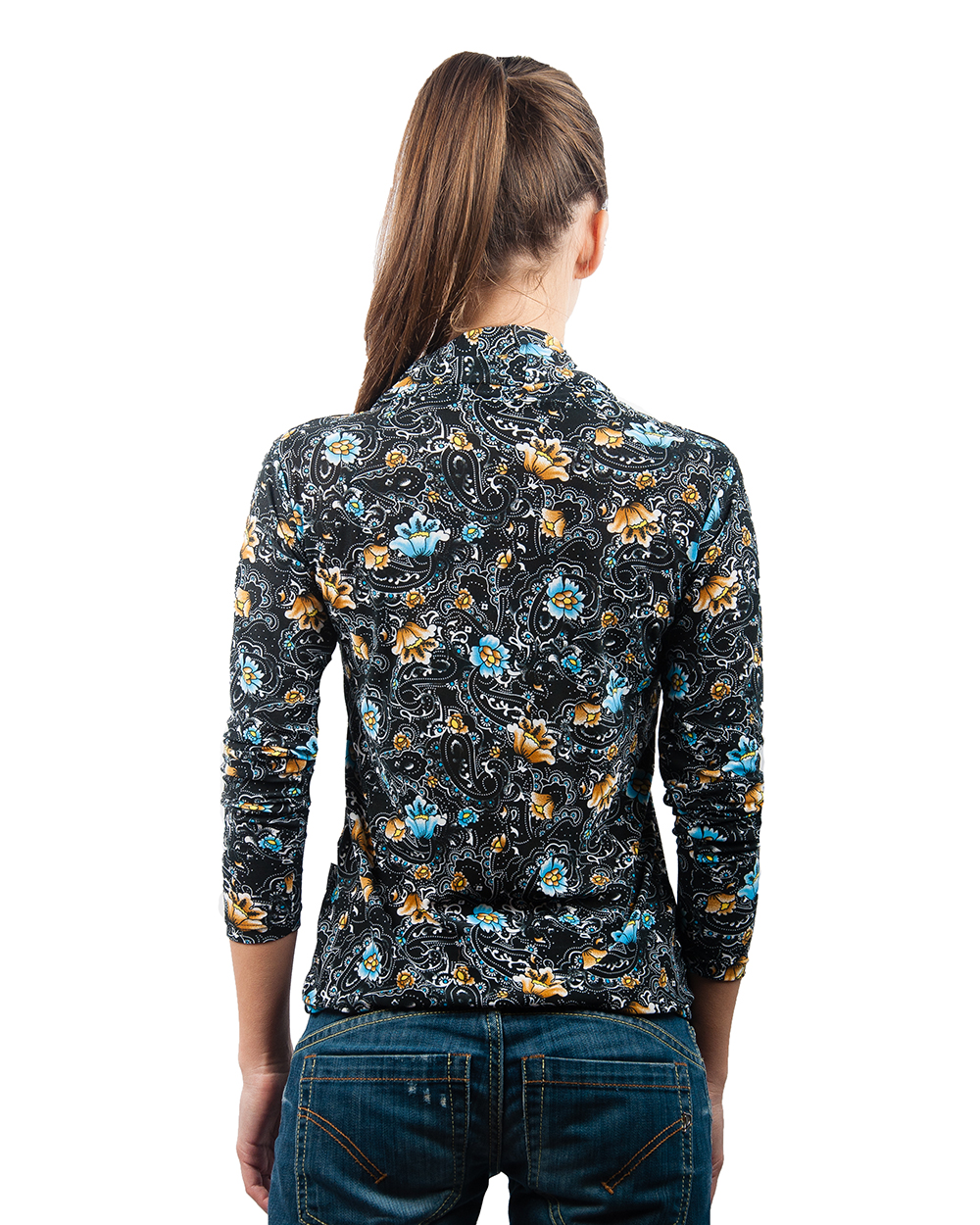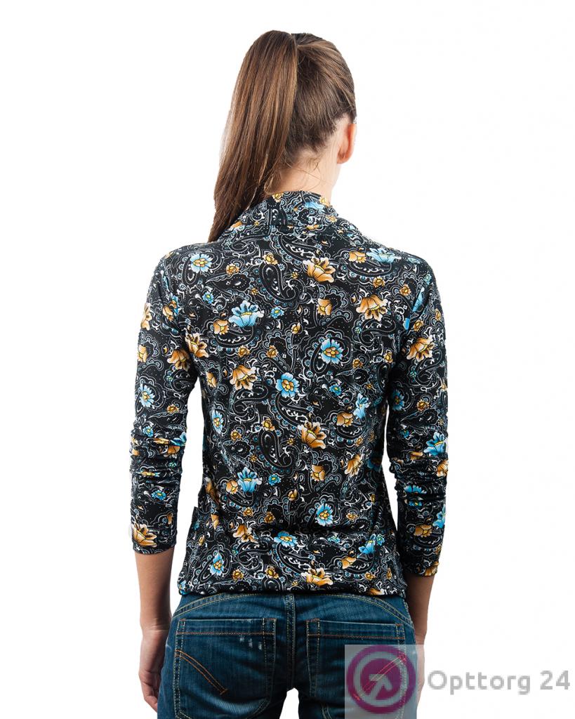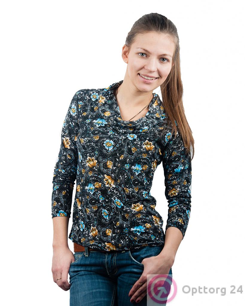 Джемпер женский с воротником-хомутом черный с цветочным рисунком оптом