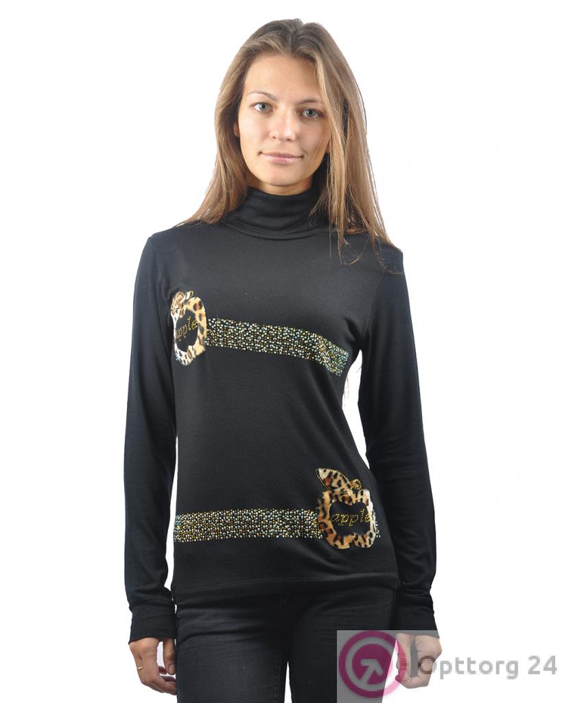 Джемпер женский с высоким горлом и декором черного цвета оптом
