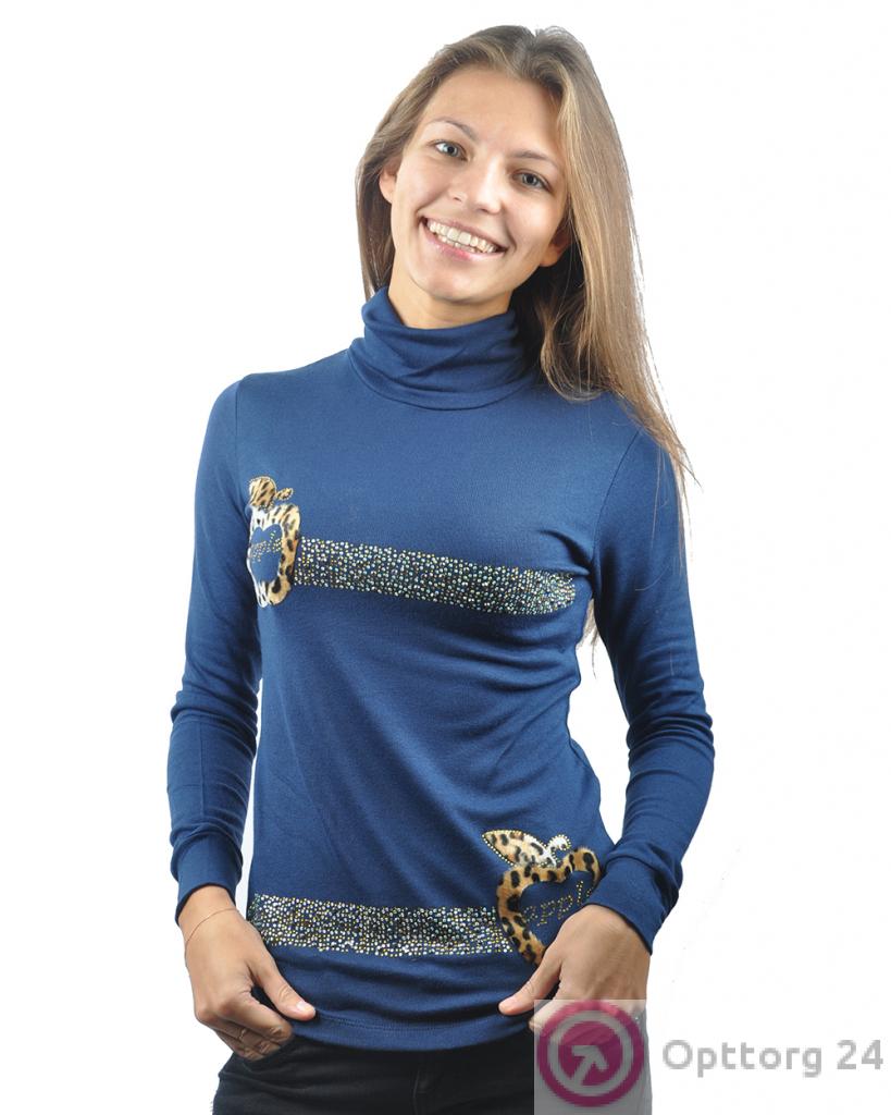 Джемпер женский с высоким горлом и декором синего цвета оптом
