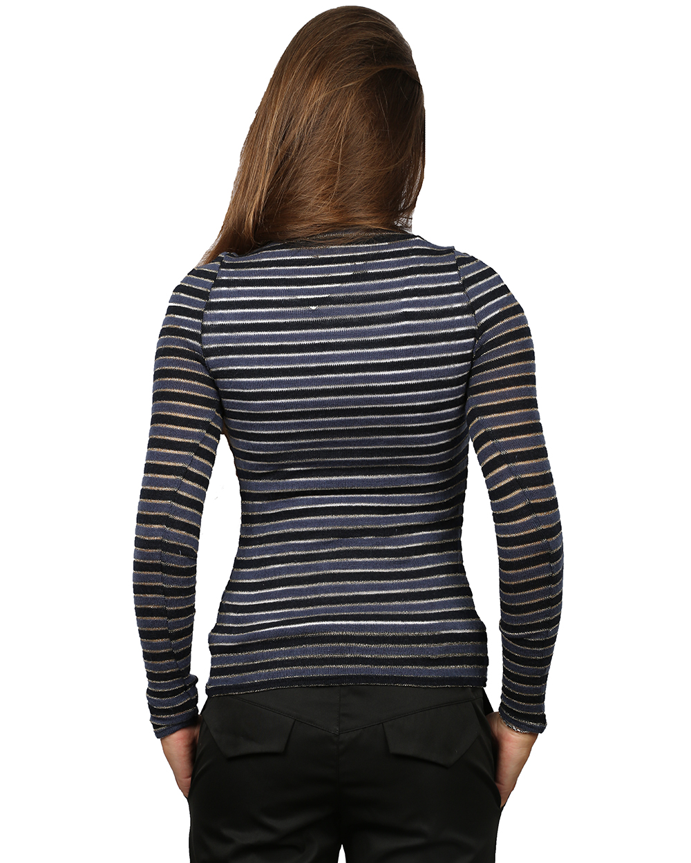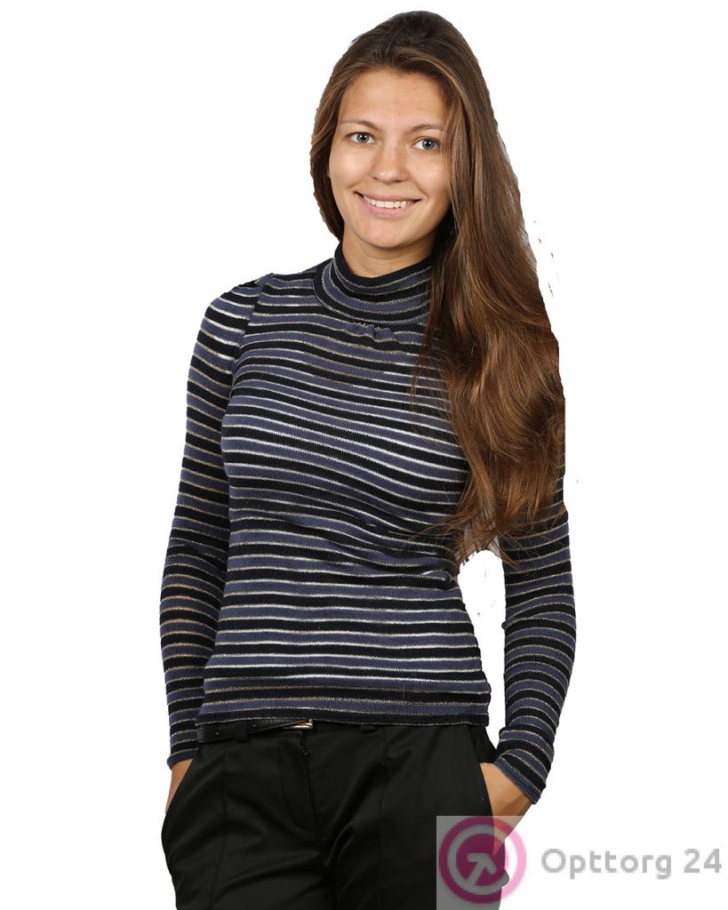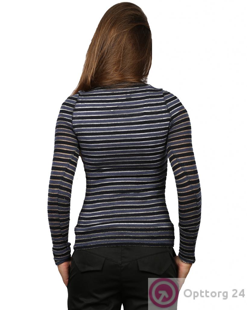Джемпер женский тёмно-синего цвета в чёрную и бежевую полоску оптом