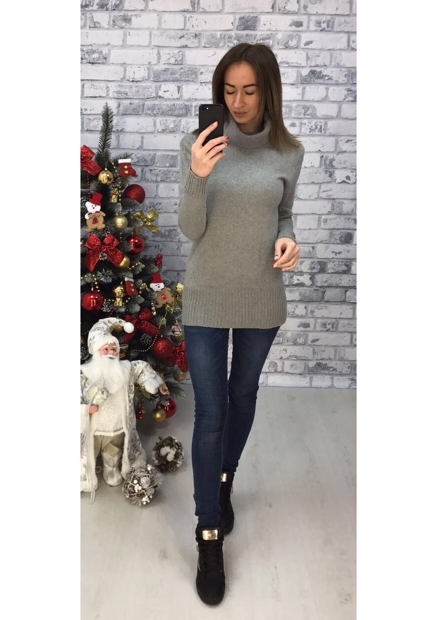 Классический удлиненный джемпер. Всегда акутальный серый цвет, высокий ворот, резинки на рукавах - все что нужно для практичности и удобства