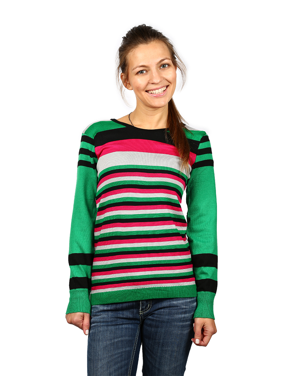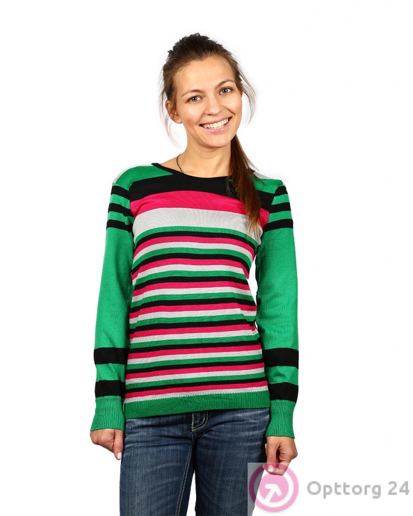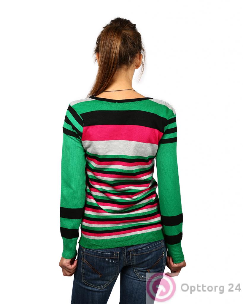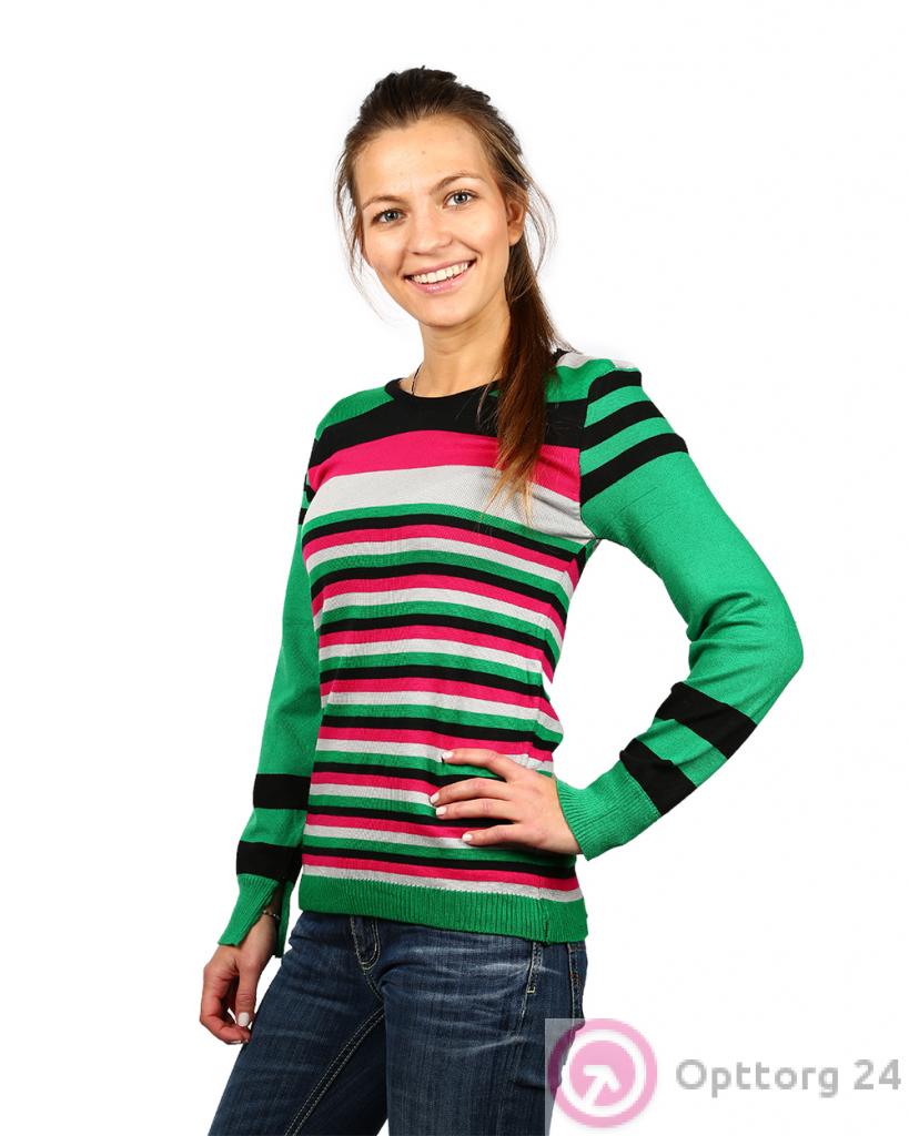Джемпер женский зелёный в чёрно-красно-белую полоску купить оптомДжемпер женский зелёный в чёрно-красно-белую полоску купить оптом