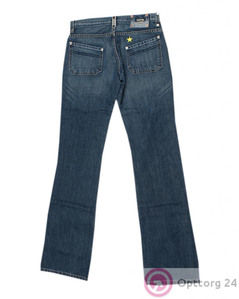 Джинсы женские синие с накладными карманами оптом