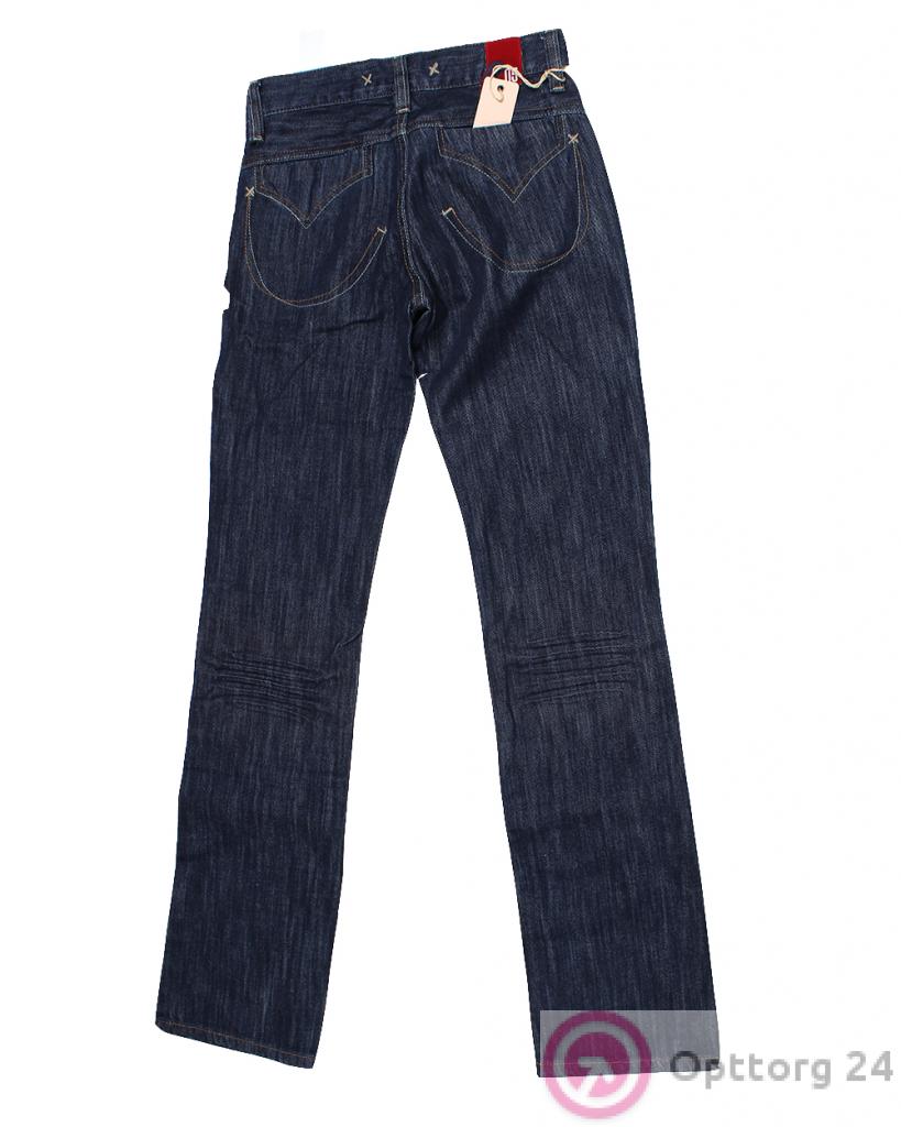 Темно-синие женские джинсы прямого кроя. Спереди на карманах прострочка.