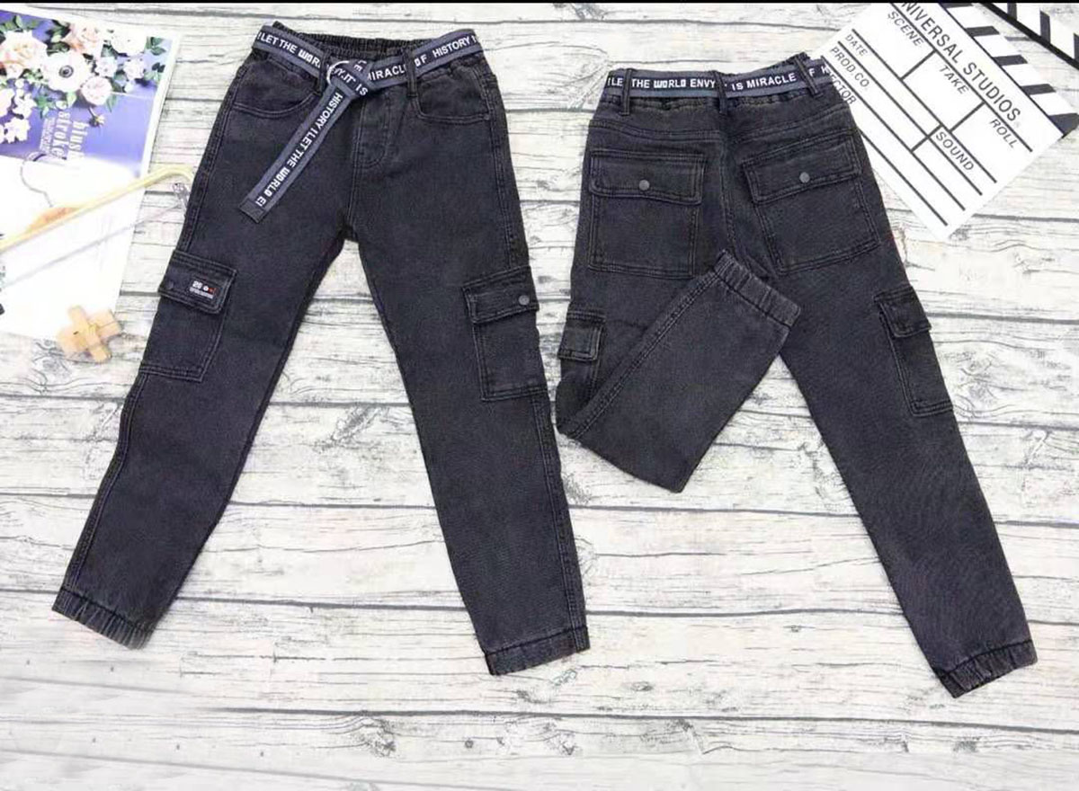 Описание: Джинсы-джоггеры женские утепленные темно-серого цвета. Брючины снизу на резинке. Пояс на широкой резинке декорирован ремнем. Есть карманы спереди и сзади и большие накладные карманы по бокам.