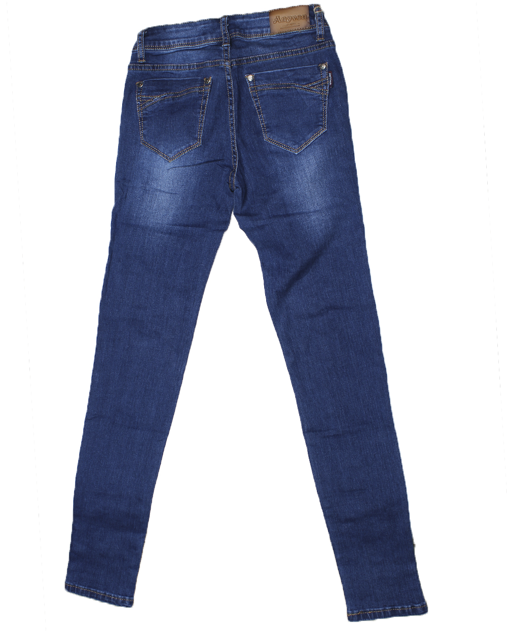 Джинсы синего цвета для женщин с протёртостью. оптом