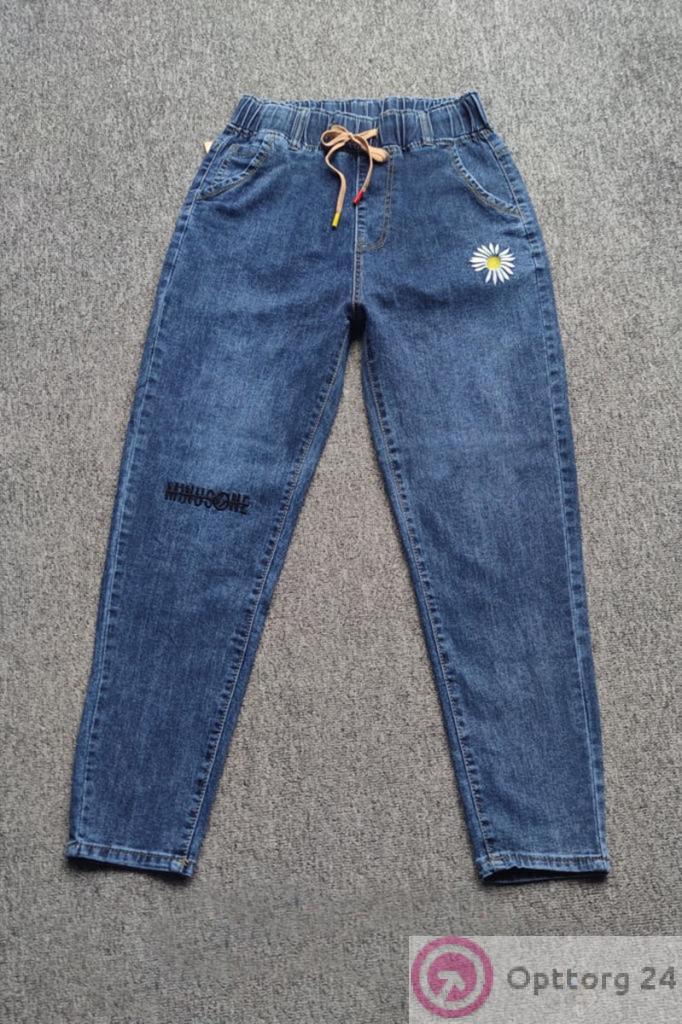 Джинсы женские на резинке с надписью на колене оптом