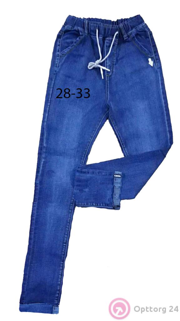 Джинсы женские пояс на резинке с небольшими потертостями оптом