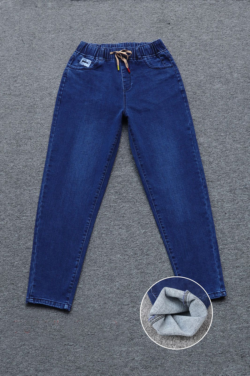 Джинсы женские с начесом на резинке и с нашивкой оптом