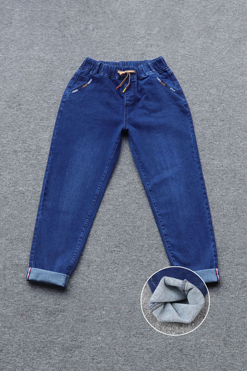 Джинсы женские с начесом на резинке с декором оптом