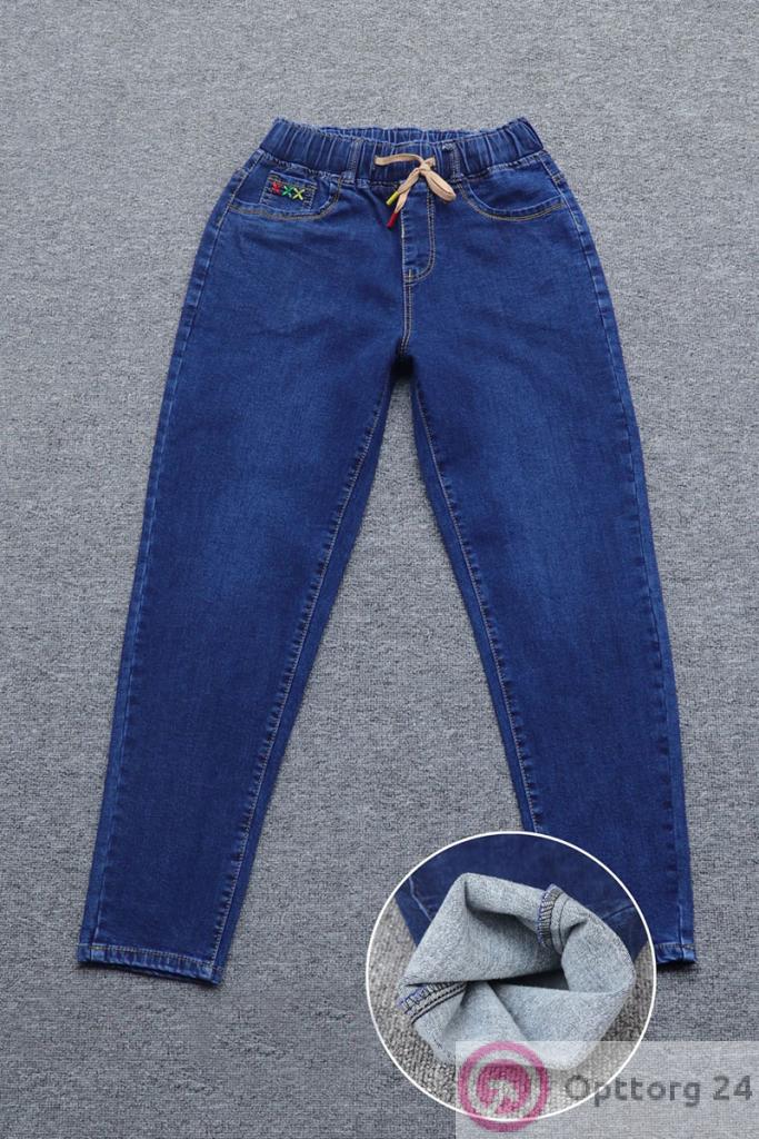 Джинсы женские с начесом на резинке с вышивкой оптом