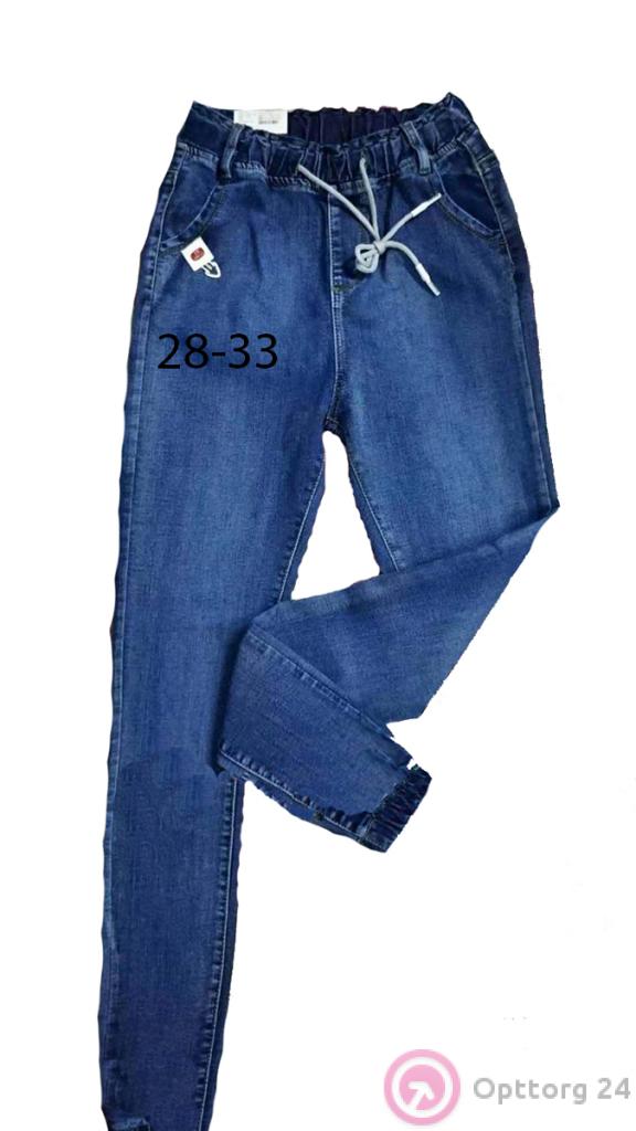Описание: Джинсы женские насыщенного-синего цвета с декоративной отделкой: с небольшими потертостями, около кармана нашивка. Заужены, низ брючин на резинке. Пояс на резинке со шнурком, есть шлевки для ремня. Имеются карманы.