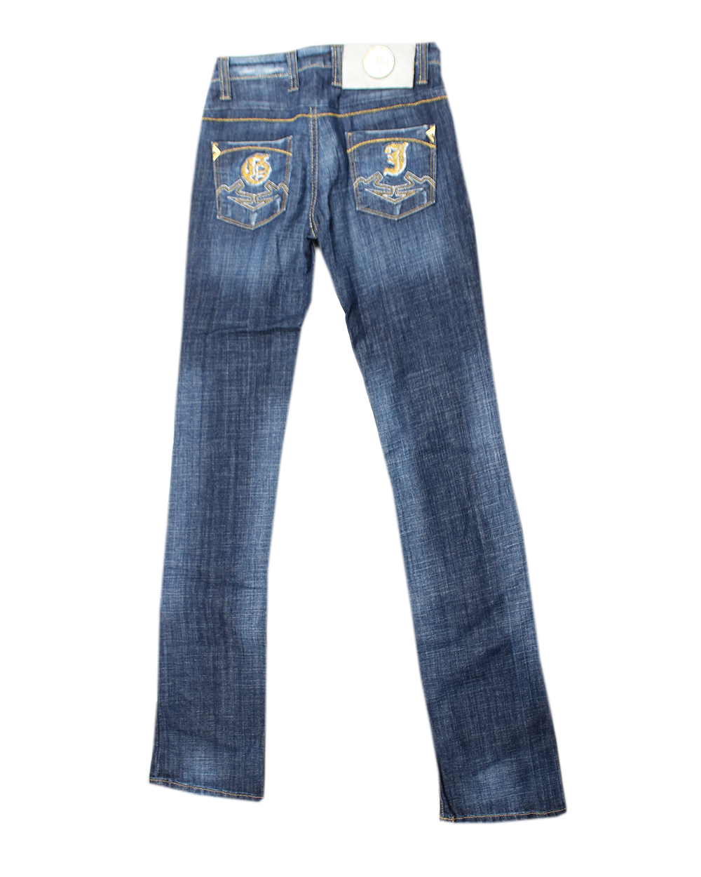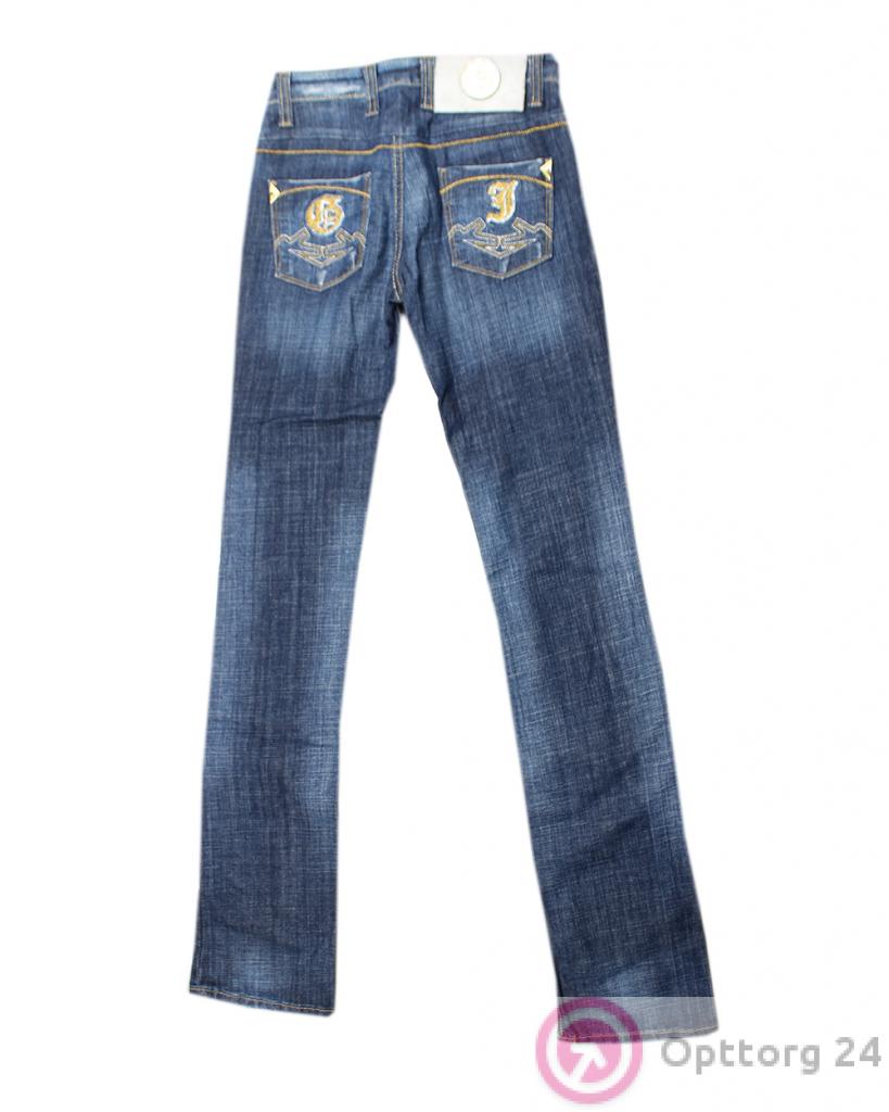 Джинсы женские с золотистой вышивкой сбоку на брючине. Узкие штанины. Средняя посадка.