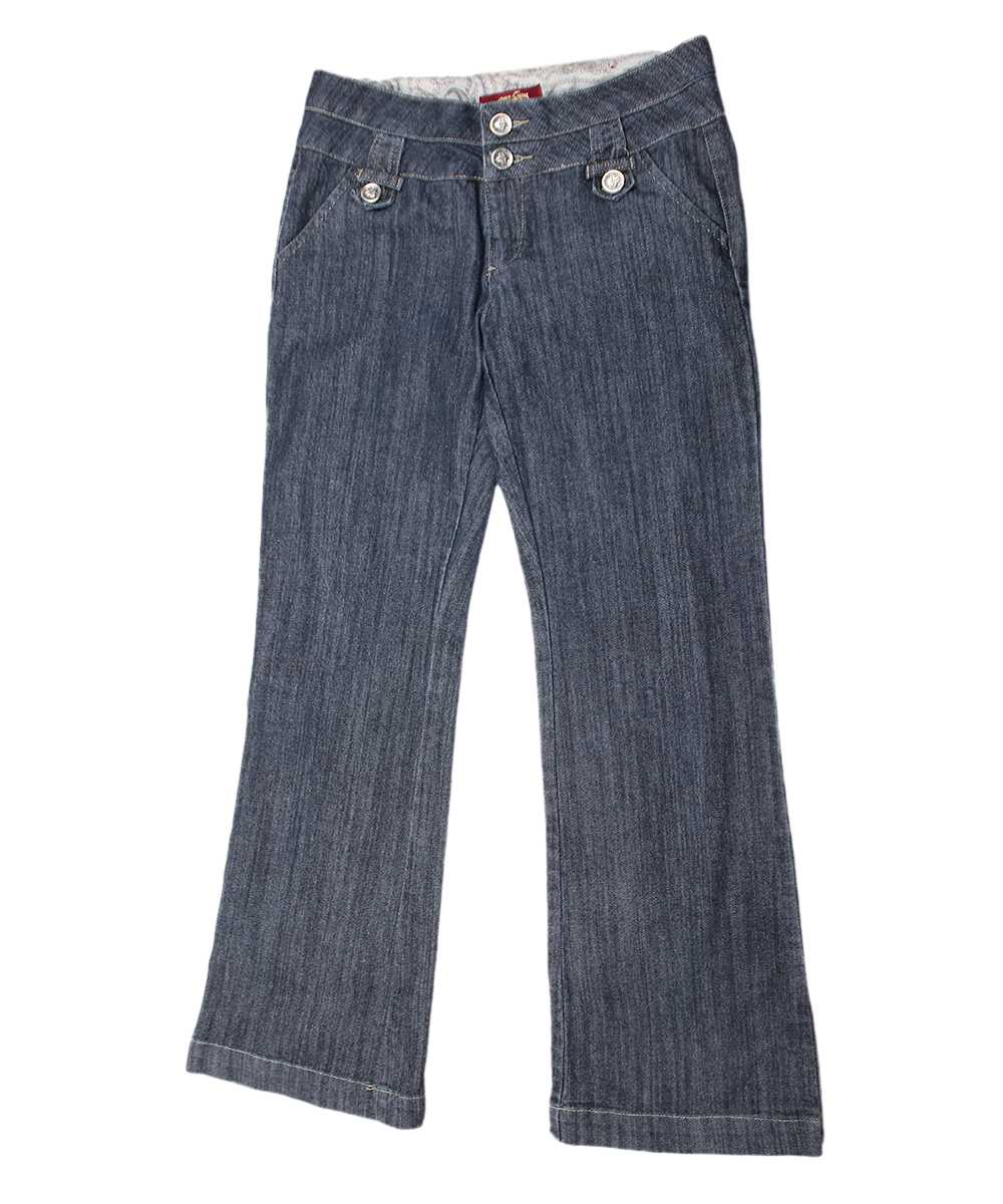 Универсальные женские джинсы с двумья пуговицами и врезными карманами сзади. Средняя посадка.