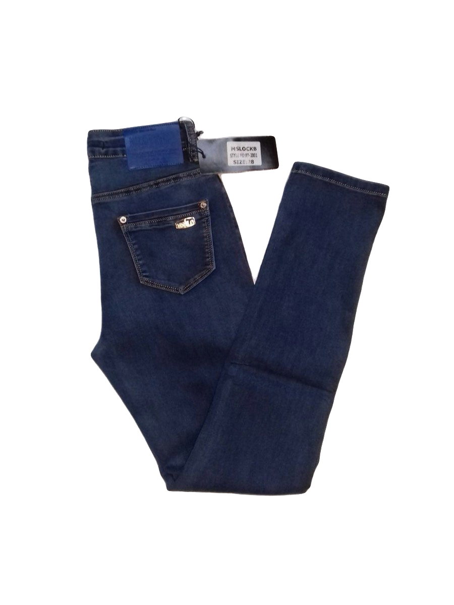 Классические джинсы синего цвета заниженные снизу. Стандартная посадка.