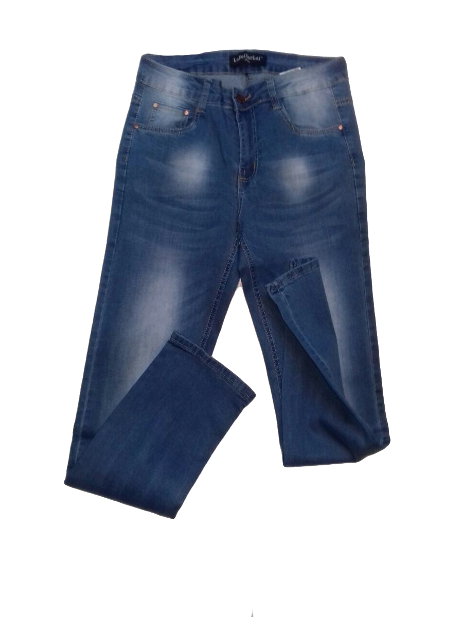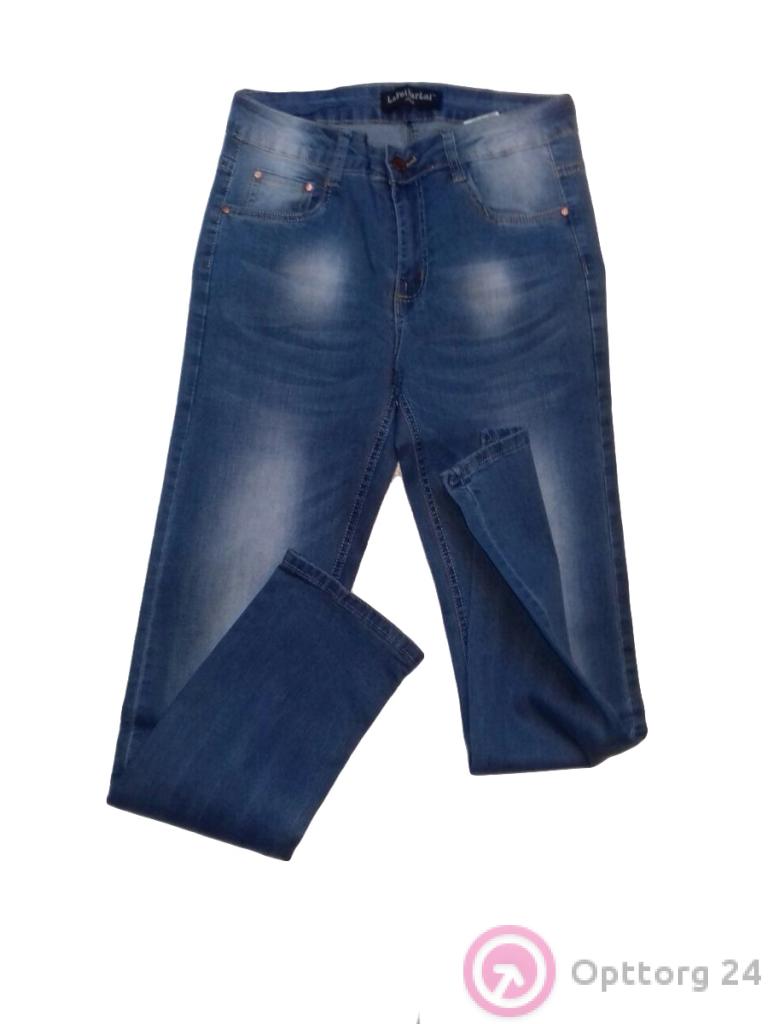 Классические джинсы для женщин синего цвета с потертостями, спереди на молнии. Стандартная посадка.