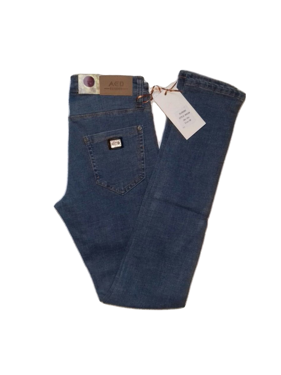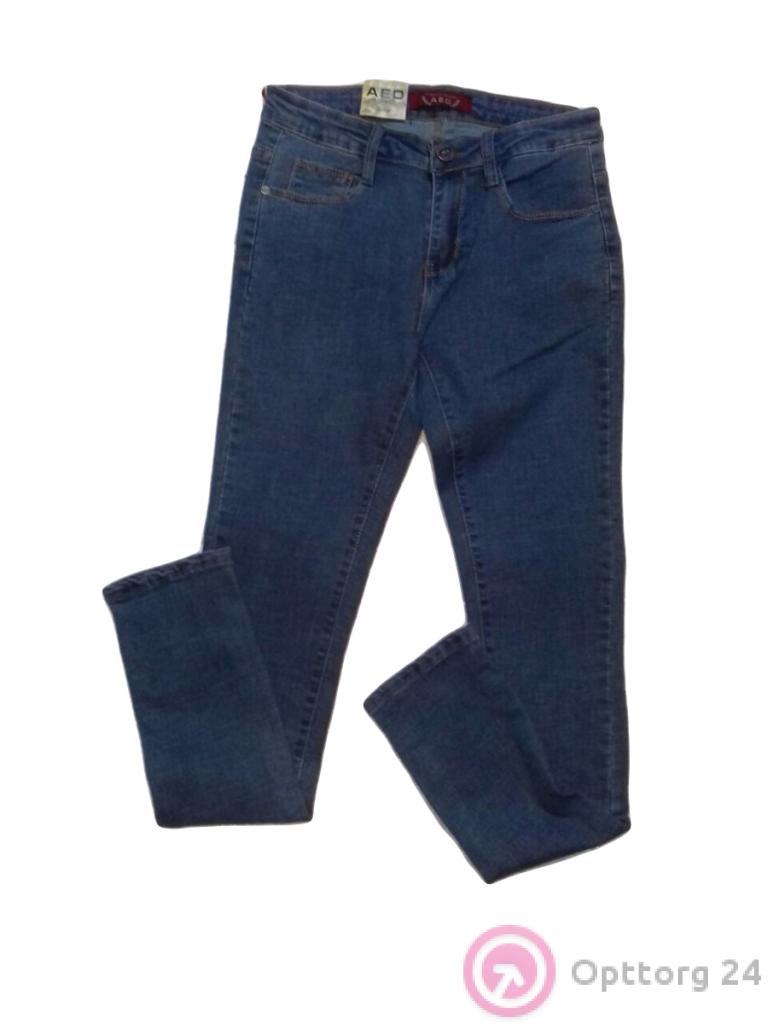 Стильные джинсы синего цвета классической посадки. Сзади и спереди изделия карманы.