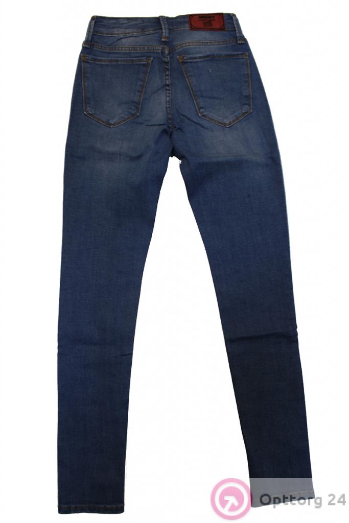 Описание: Джинсы женские синего цвета с небольшими потертостями. Классического кроя. Зауженные брючины. Застегивается на пуговицу и молнию. Есть шлевки для ремня. Есть четыре кармана.