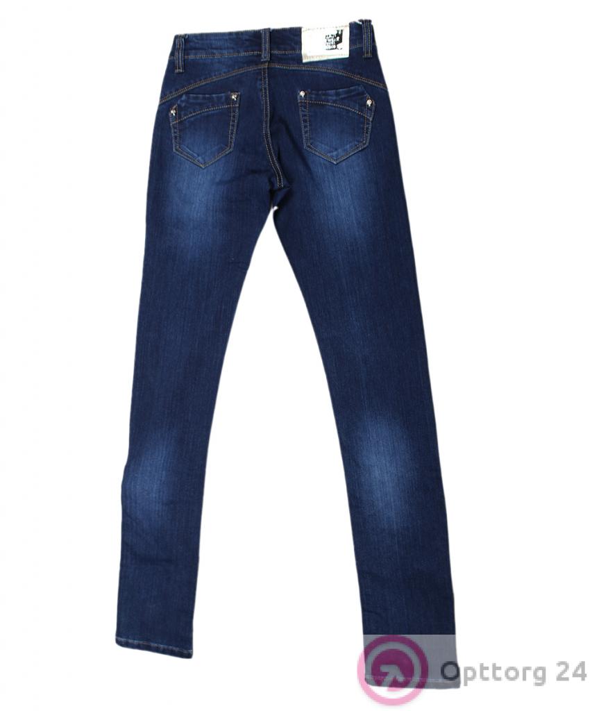 Модные женские джинсы облегающего кроя. Изделие имеет оригинальную форму карманов и контрастную прострочку.