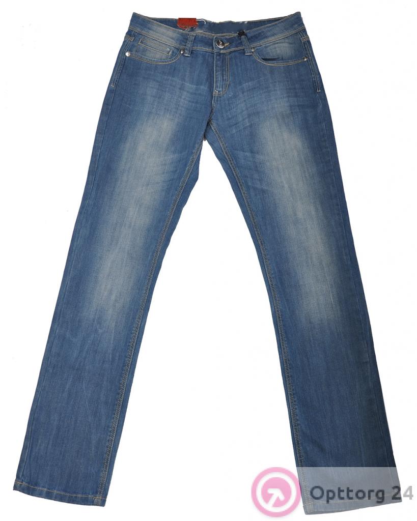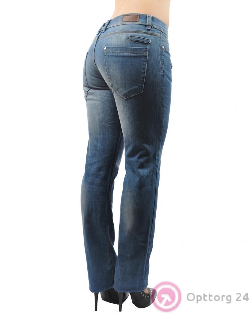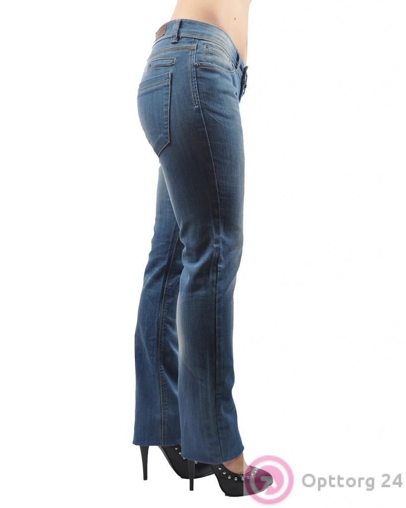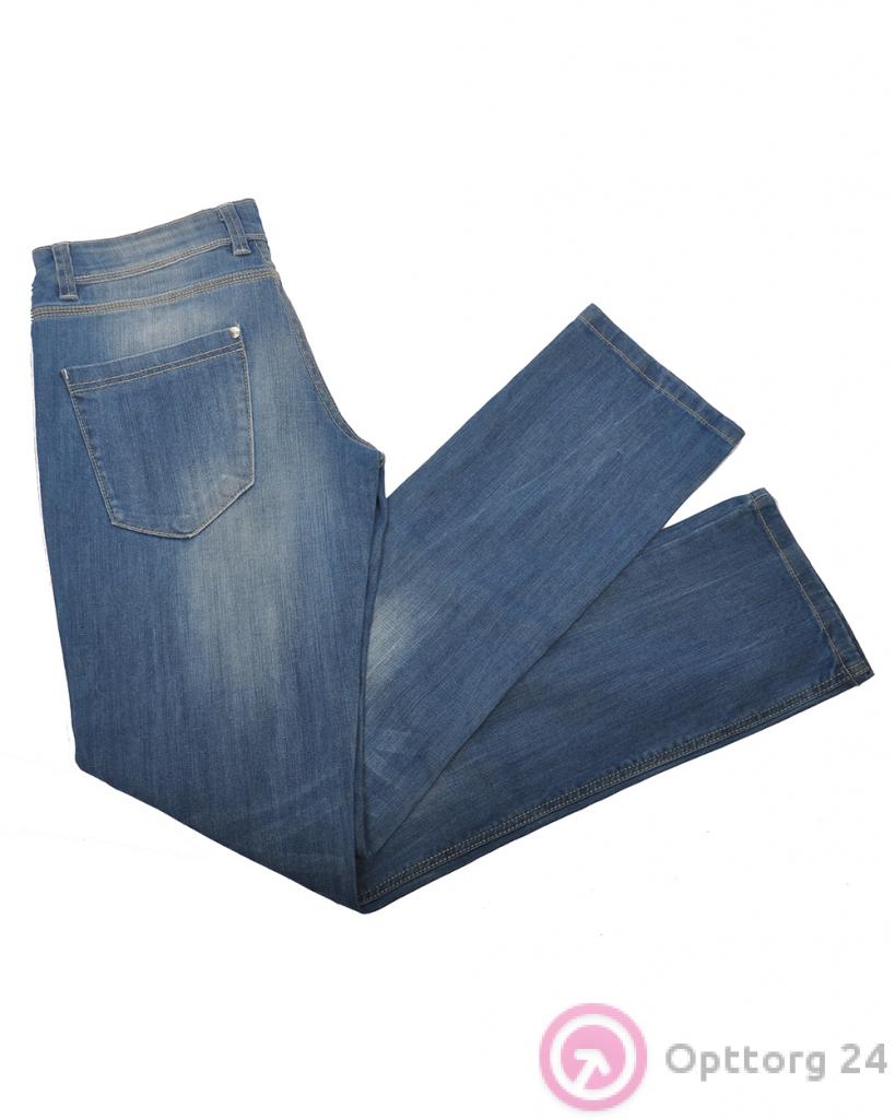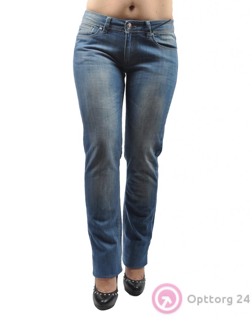 Джинсы женские синие с потертостями зауженные к низу оптом