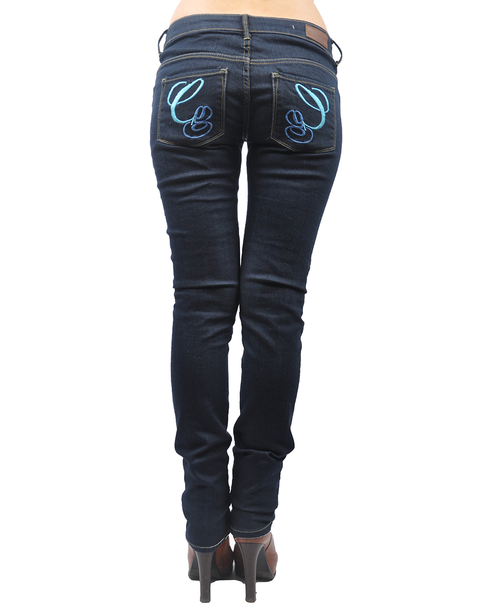 Синие зауженные джинсы идеально впишутся в стиль любой направленности, прекрасно дополнив ваш образ. Голубоватая вышивка на задних карманах делает небольшой уклон в сторону легкой игривости.