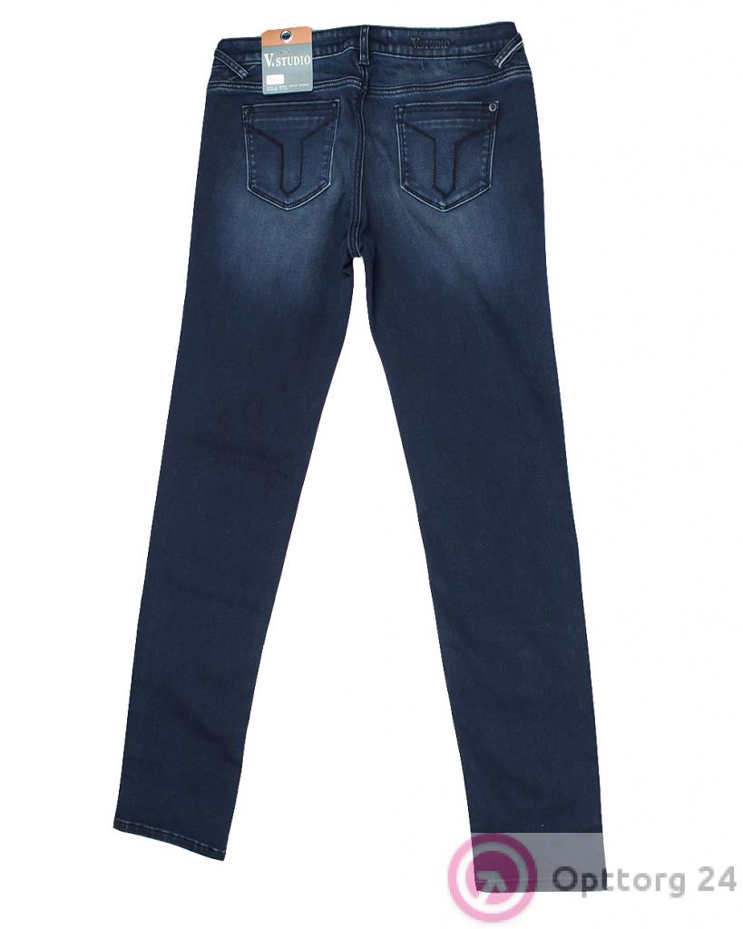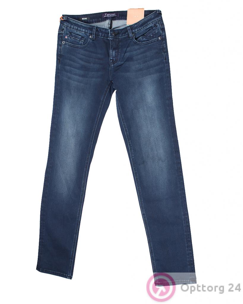 Джинсы женские синие зауженные высветленные оптом