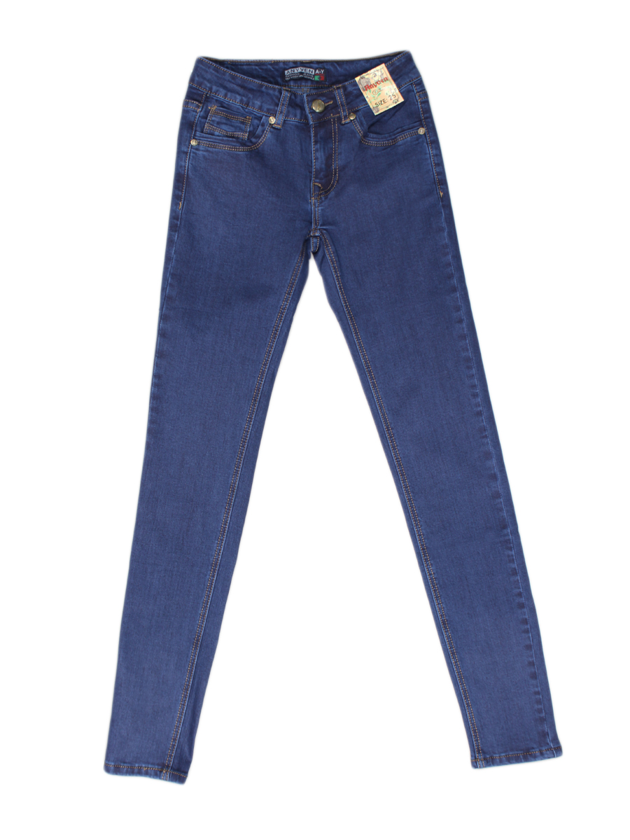 Джинсы женские Slim в тёмно-синих тонах с двойным узором на "часовом" кармане.