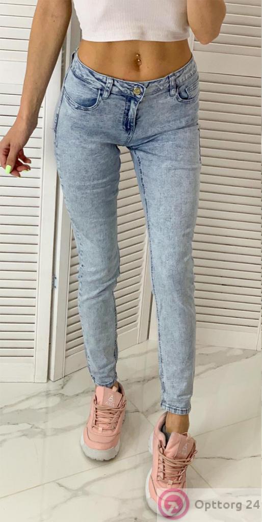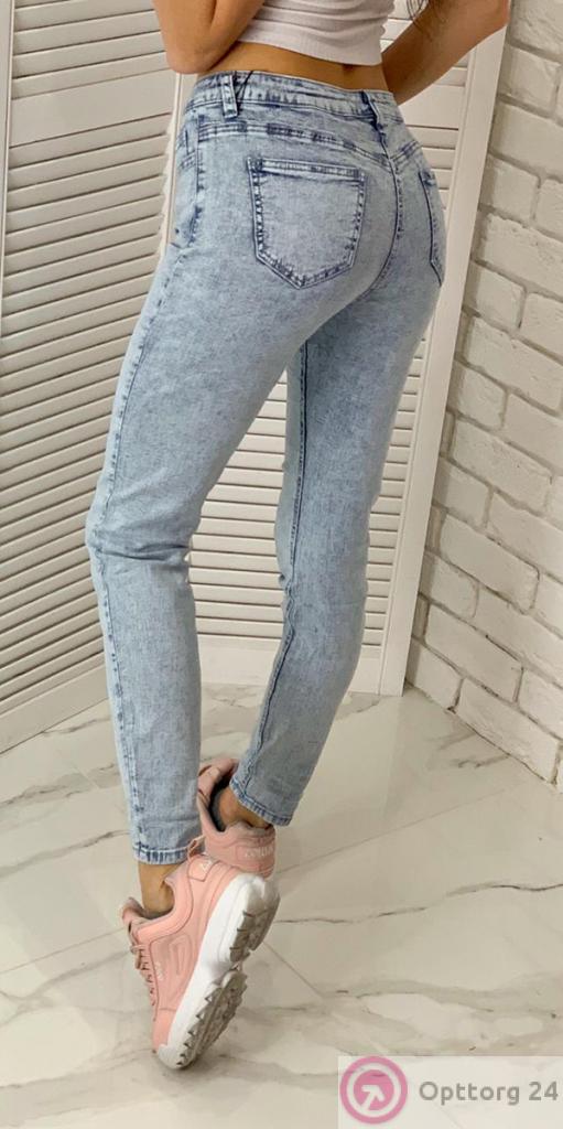 Джинсы женские светло-синего цвета с эффектом варенки оптом
