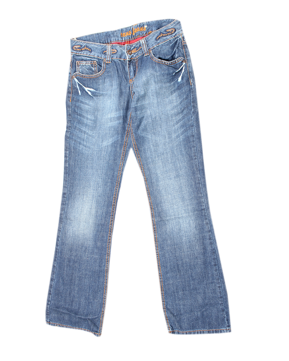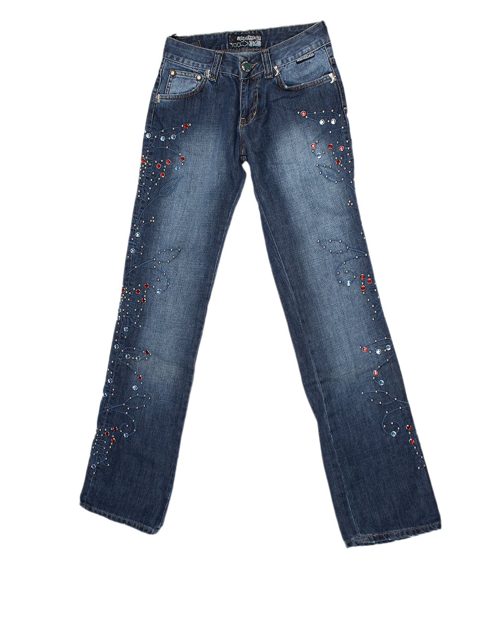 Женские джинсы с высветленными фрагментами. Модель имеет прямой крой. На поясе оригинальныая вышивка.