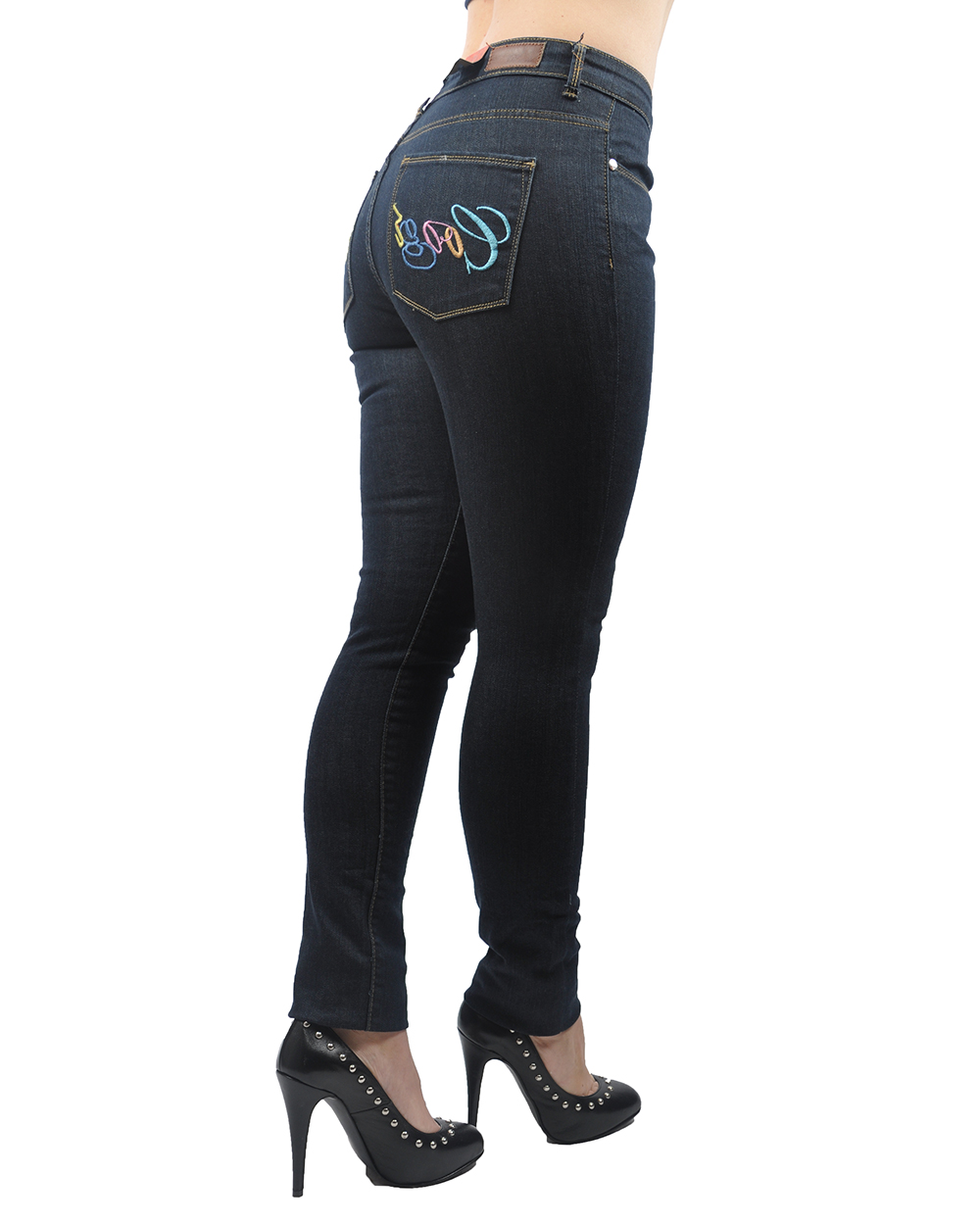 Эти обворожительные классические джинсы традиционного темно-синего цвета прекрасно подчеркнут все достоинства фигуры. Цветная вышивка на задник карманах немного разбавляет их монохромность.