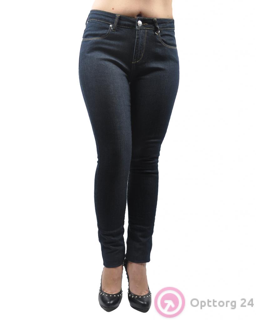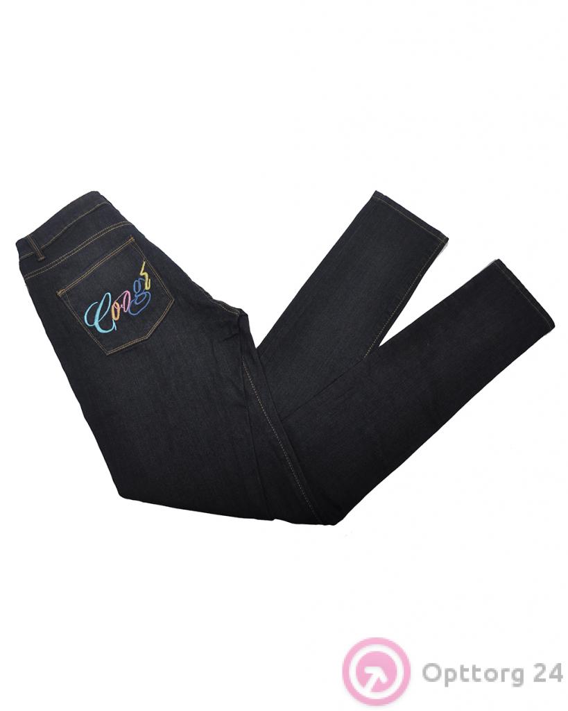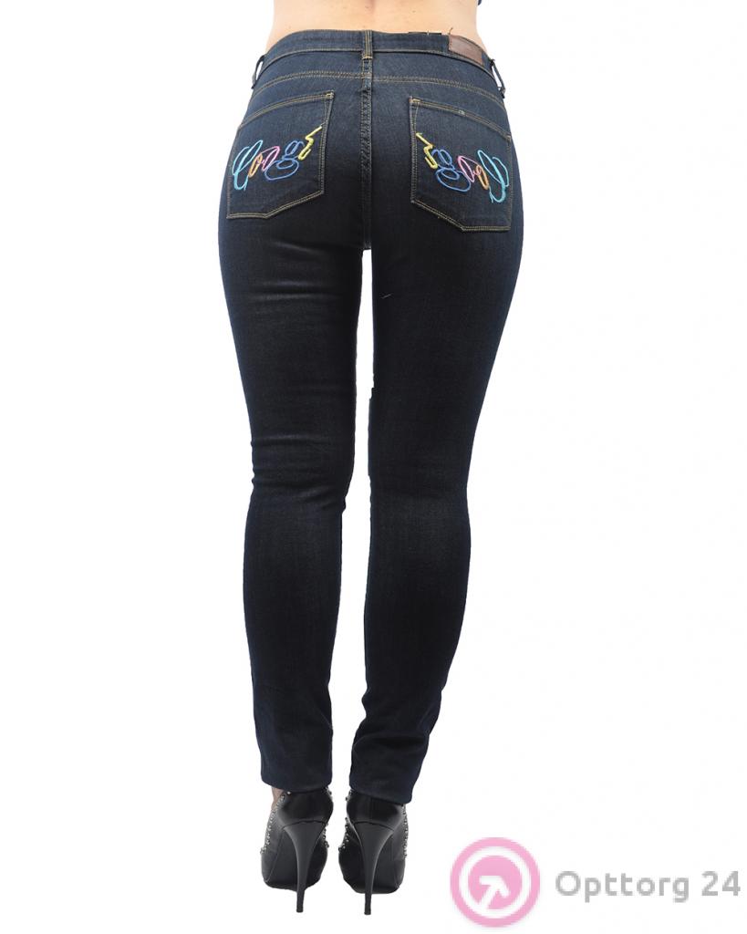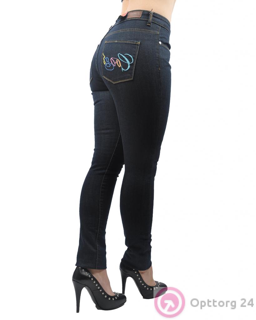 Джинсы женские темно-синие с цветной вышивкой на задних карманах оптом